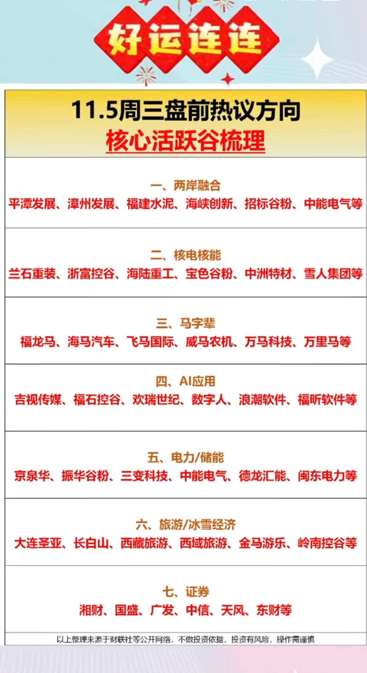 11.05周三盘前热议题材:核心个股1.两岸融合2.核电核能3.马字辈4.
