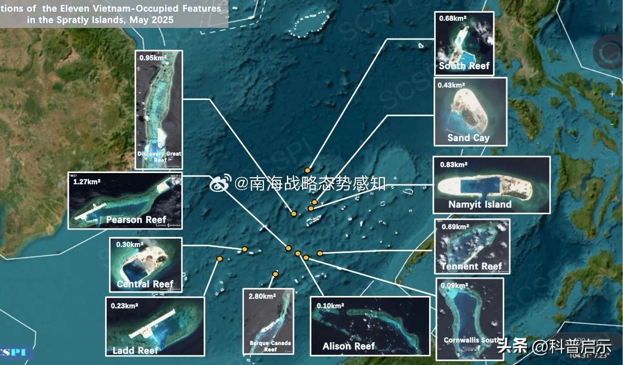 越南在南海动作不断,在侵占的29个岛礁上,加快了10块岛礁的吹填,岛上机场、弹药库、雷达站齐全,面积直逼我曾控礁盘的七成,若放任不管,六门礁与鬼喊礁恐将连成“海上防线”。 这里是“科普启示”,感谢阅读、点赞、评论,每日都会分享我国南海岛礁从屈辱到辉煌的蜕变,感谢关注! 上世纪七八十年代,我海军力量尚未覆盖南沙,越南趁机抢占礁盘并插旗。随后,越南效仿我填海之举,将简易高脚屋扩建为坚固水泥岛。如今,他们更是动用绞吸船昼夜不息地抽沙填海,一年间便造出数个足球场大小的陆地。 越南野心勃勃,意图将所占礁盘打造成能起降战机的实心岛屿,苏30战机可随时降落补给,雷达则如移动哨塔,严密监控过往船只。 对此,有网友翻出旧账,认为赤瓜礁之战后未乘胜追击,让越南有了可乘之机;也有人指出,越南背后有域外大国撑腰,填岛速度才如此惊人。但无论网络上的议论如何热烈,都难以阻挡越南绞吸船的作业。 越南外交部辩称这是经济区内的正常建设,但卫星图像却揭示了真相:跑道编号清晰,旁边就是弹药库,显然不是为渔民准备的。 数据显示,越南近年不惜重金从欧洲进口挖泥船,且贷款条件极为优惠,背后似有神秘力量资助其在南海“筑墙”。而我方却因环保评估等问题,船期一再拖延。 要破解这一困局,单靠抗议显然不够。需公务船常态化巡逻,科研钻井平台进驻争议礁盘,同时联合东盟国家开展渔业养护合作,让越南感受到被孤立的压力,从而放缓其填岛步伐。 南海之争,本质上是存在感的较量。越南在抢时间,我们则可抢空间。海上民兵与科考船协同作战,让我们的存在成为习惯,到那时,再多的水泥也挡不住自然的潮水与我们的决心。