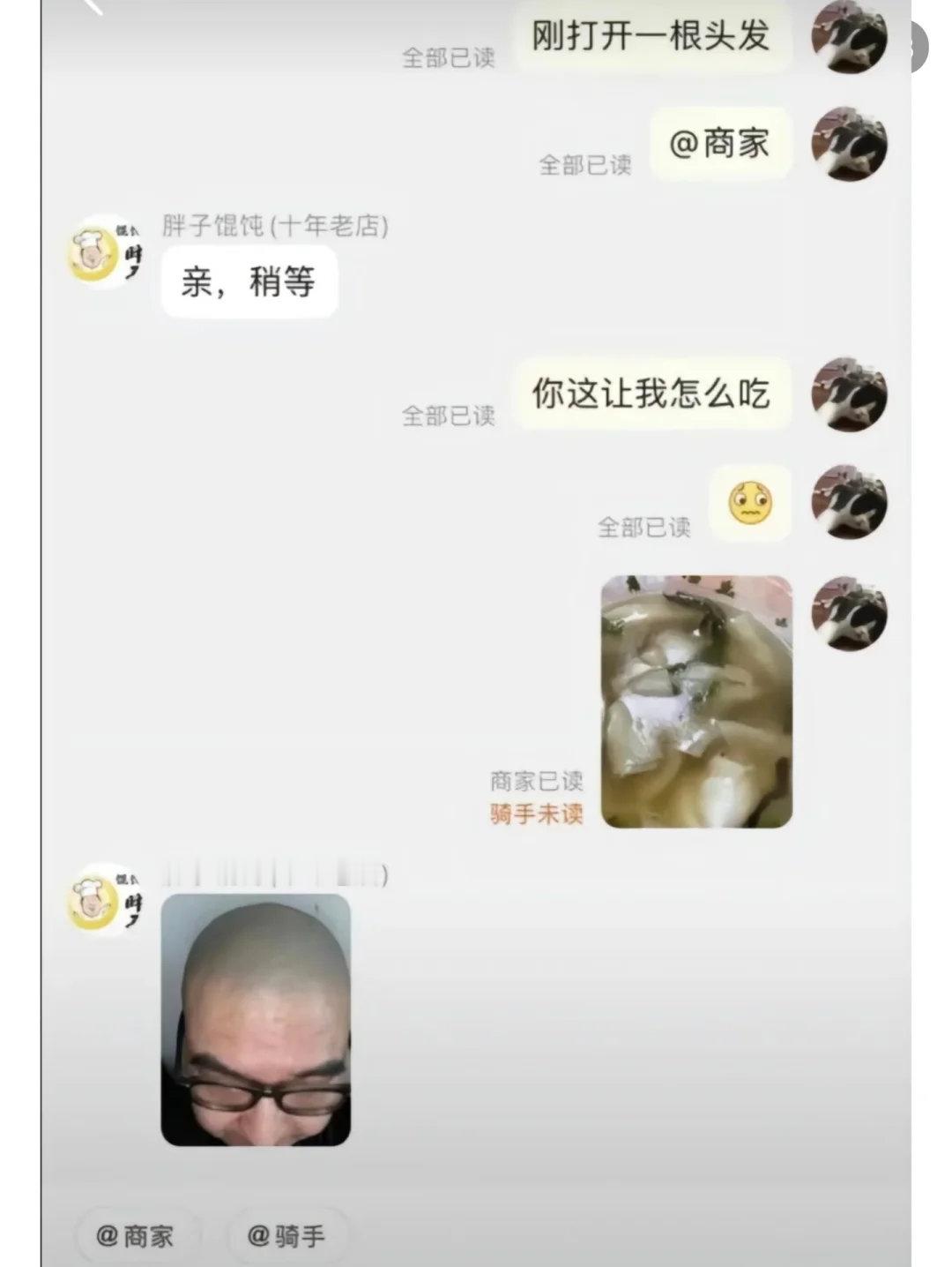 生活里的离谱名场面:外卖小哥被催单回怼“加料”,商家遇头发甩光头照,还有骑手把136次送餐变成脱单现场…你遇到过最绝的奇葩互动是啥? ​​​