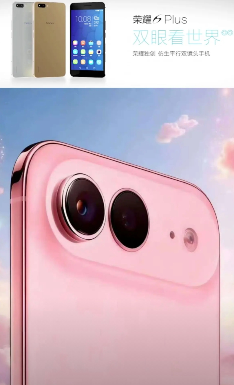 荣耀6 Plus以前就用过采用横排左上角双摄,一直到荣耀10系列都是这样设计
