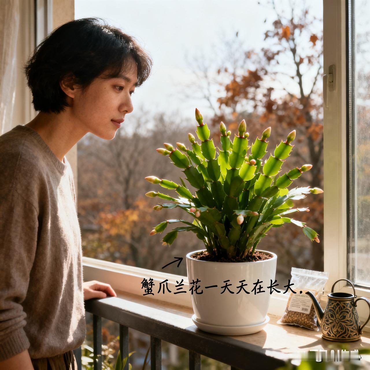 我幸福感小事就是养蟹爪兰。眨眼秋天已过,迎来了初冬。半年多过去,生活里很多事都淡了,可养蟹爪兰的快乐一直都在。 从它发芽开始,看着一片片嫩叶冒出来,就像生活突然有了新希望。接着打花苞,跟着花苞一起期待绽放。等花开时,那股幸福感就像春天的暖风,温柔又治愈。 养花不在于看花,而是欣赏生长过程。蟹爪兰虽不会说话,却能让我卸下疲惫。在阳台上静静看着它,在我的精心护养下,蟹爪兰陆续冒出来的花苞高兴得好像咧着小嘴笑,歪着小脑袋看着我,仿佛偷得浮生,心也跟着宁静。生活很苦,养养蟹爪兰给自己加点糖,平凡日子也能满是浪漫。