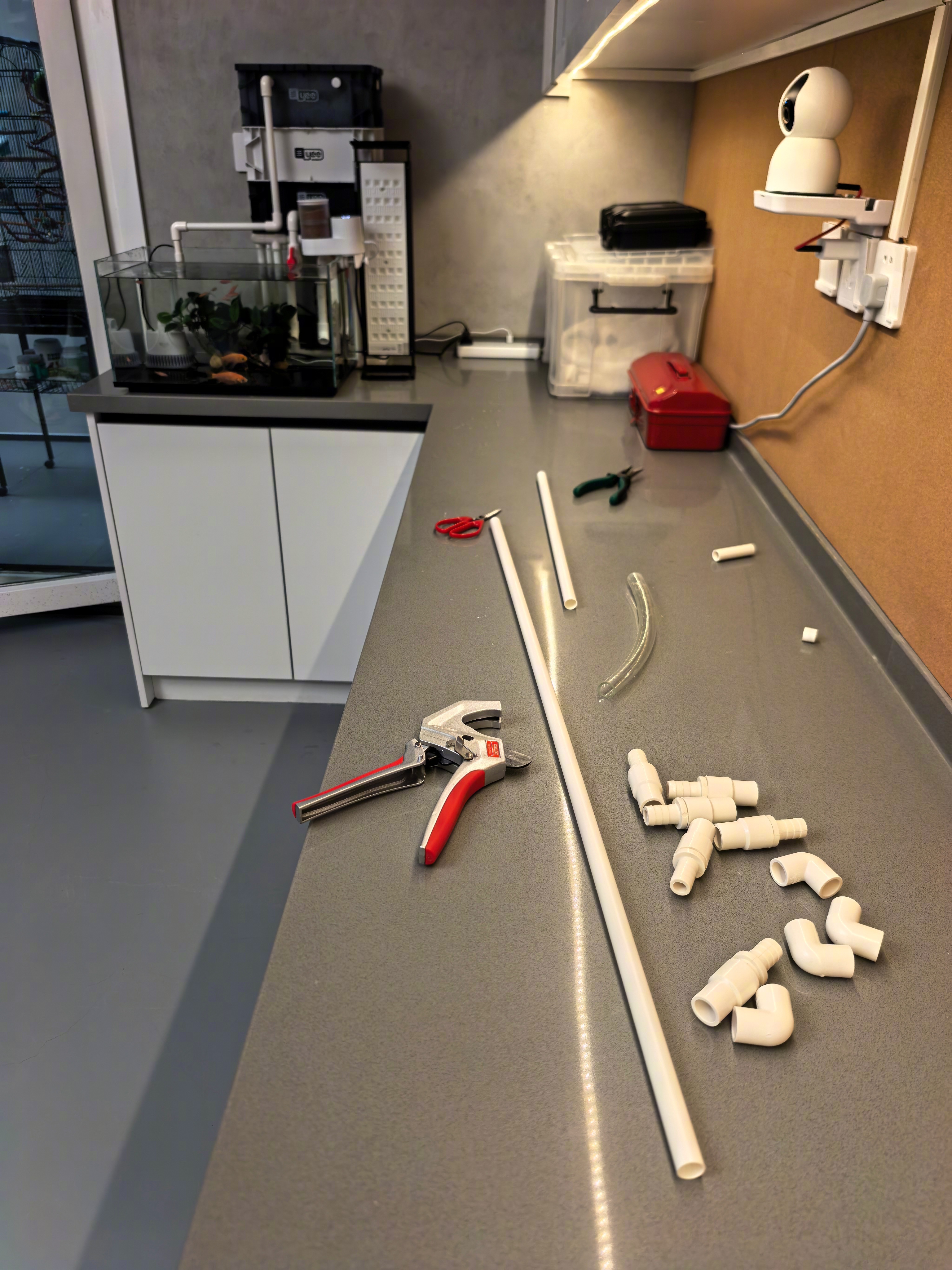 揭秘图1用途:切PVC管子的。我把鱼缸过滤进水管子从图2改为了后面横平竖直,瞬间