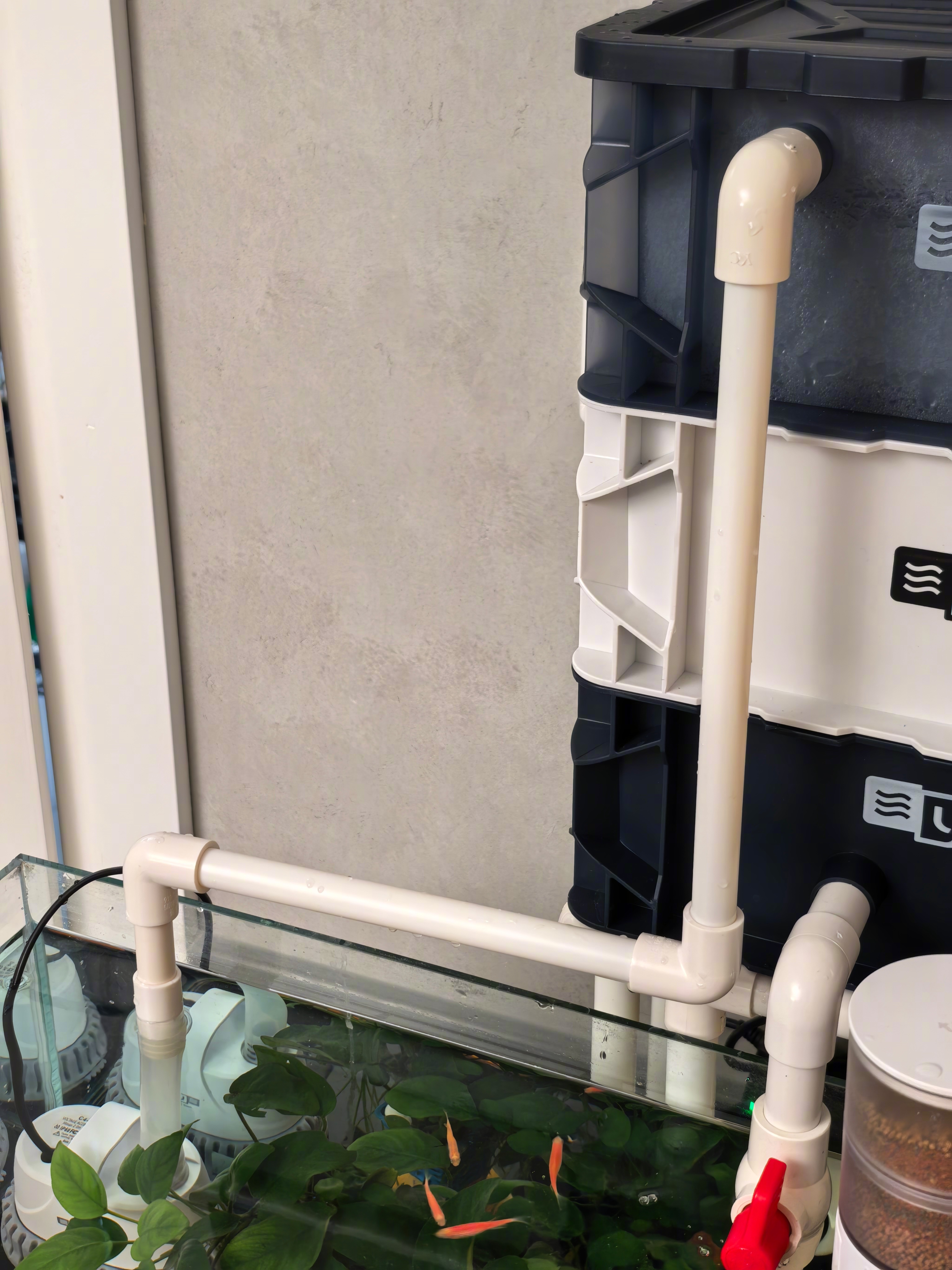 我把鱼缸过滤进水管子从图2改为了后面横平竖直,瞬间舒服多了。