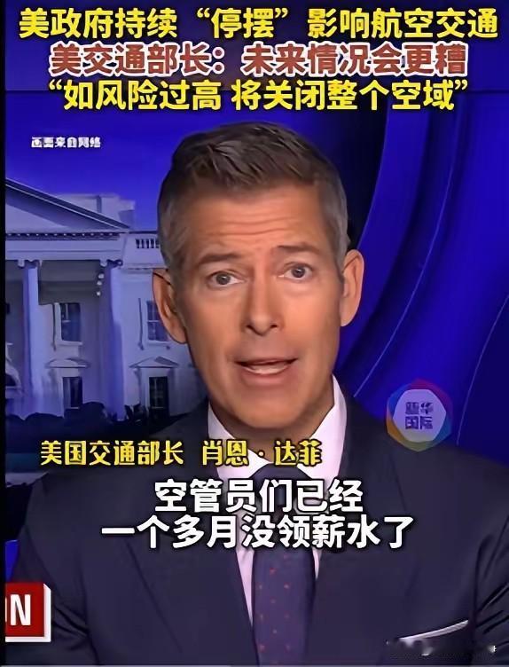 美国政府停摆,让美国的社会秩序乱成了一锅粥! 美当地时间11月3号,美国交通部部长肖恩达菲在接受采访时表示。 联邦政府的停摆已经让美国航空旅行变得非常的不安全,政府有可能将关闭全美航空系统。 这是什么意思?全美国的飞机都不能飞了吗? 美国交通部长表示,如果我们觉得政府停摆,导致航空旅行变得极其不安全,我们将会关闭整个空域的。 为了安全,我们不会让人们出行。 当然了,现阶段只是出现严重的延误,事态还没有到那一步。 但是在政府继续停摆期间,绝对存在更多的风险。 达菲表示,美国现在至少缺2000~3000名空中交通管理员。 同时他还强调一点,自从联邦政府停摆以来,大概有1.3万名交通管理员和负责机场安检工作的5万名多员工被迫无薪工作。 现在请病假的情况越来越多,很多人已经无法忍受无心工作了。 不得了啊,美国人也开始学雷锋了,这不就是义务劳动吗? 其实美国交通部长说这番话,就是给国会施压呢。 你们这些民主党再不投票通过联邦法案 到时候全美国的飞机都停飞了,你们也别想出行了。 这就是威胁呀!