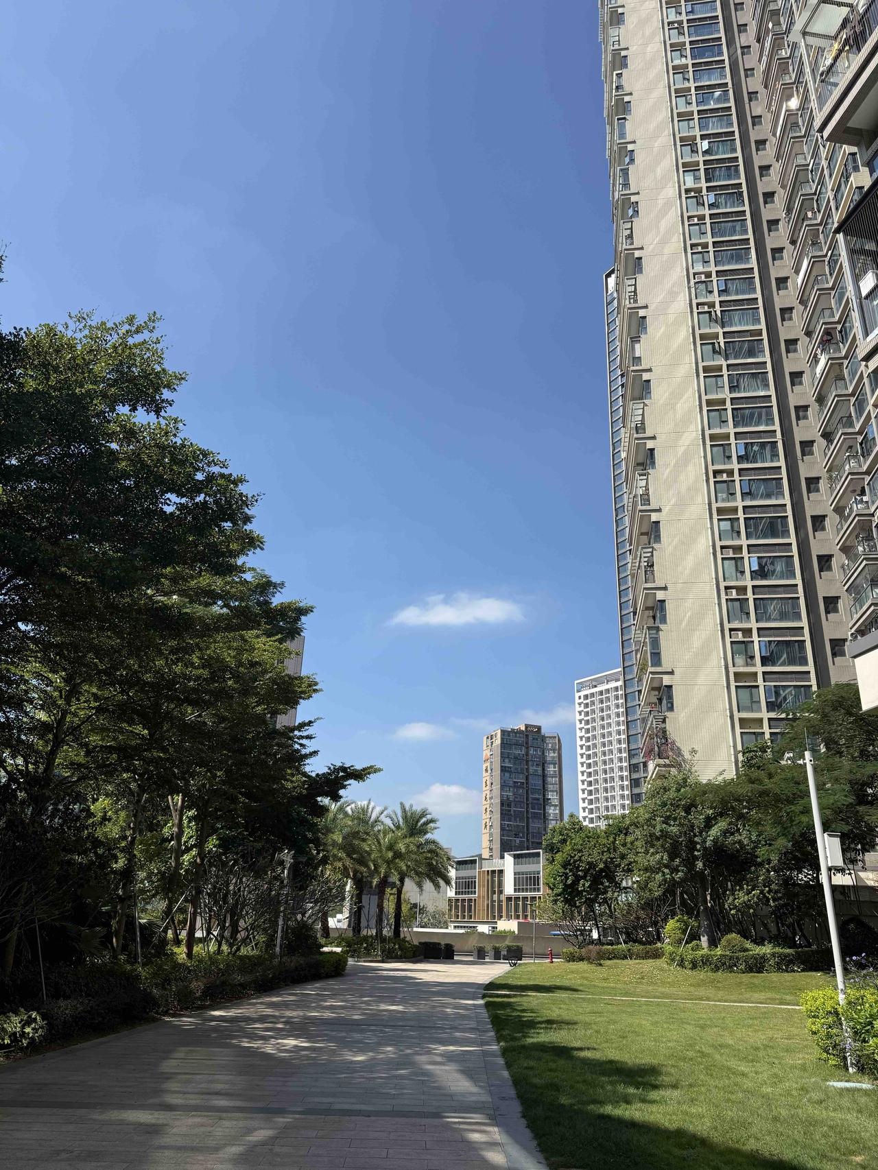 天晴啦!出门溜达溜达,阳光照得人暖暖的。这蓝天干净得晃眼,风裹着树叶味儿往脸上扑。草坪那片光暖乎乎的,往草地上一瘫晒晒太阳,惬意的很。——前几天那阴沉沉的闷劲儿,早让这好天气冲没影啦!