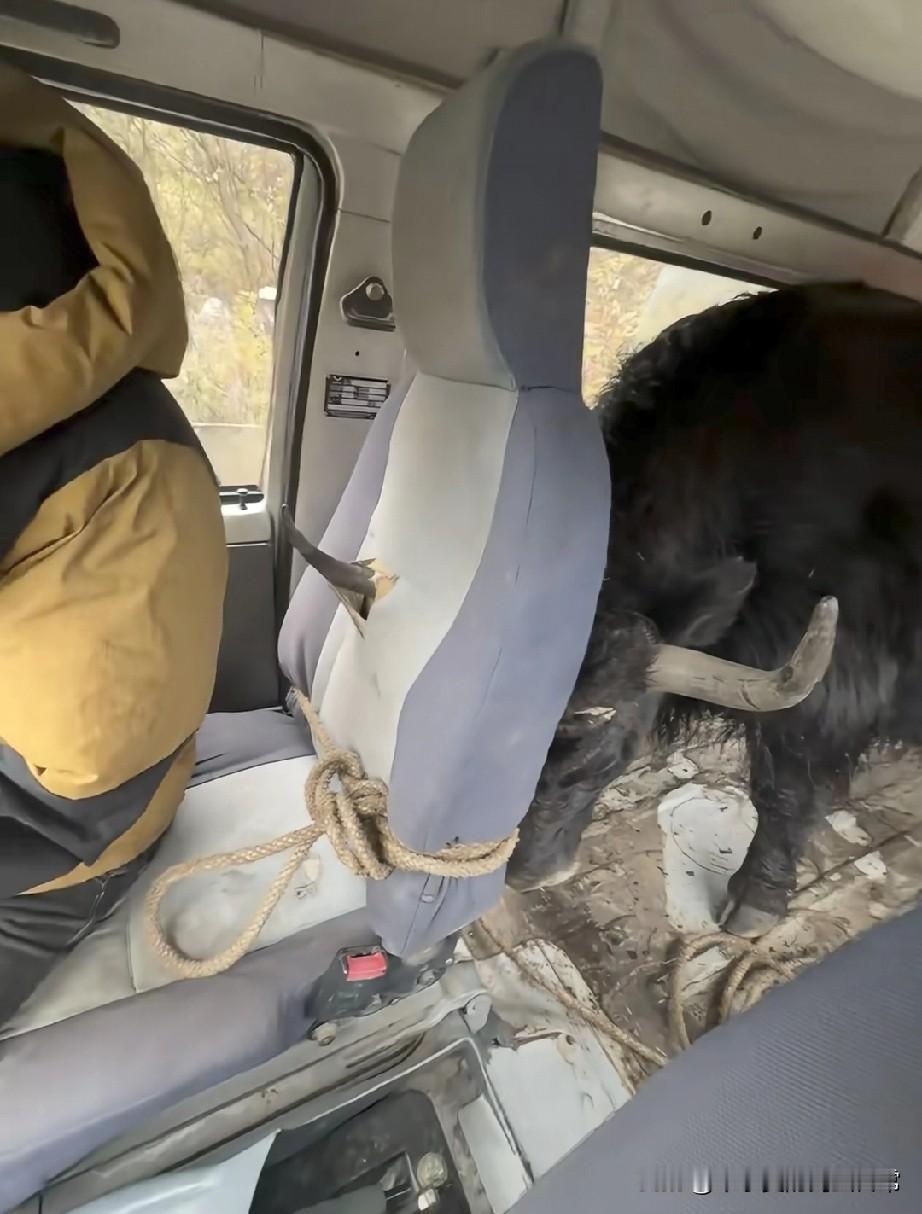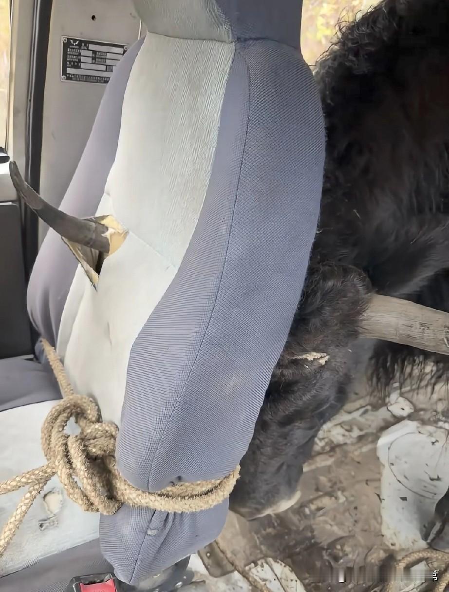 公牛插座,我说的不是你家的哦! 头回见牛坐“专车”还这么暴躁,直接把座椅捅了