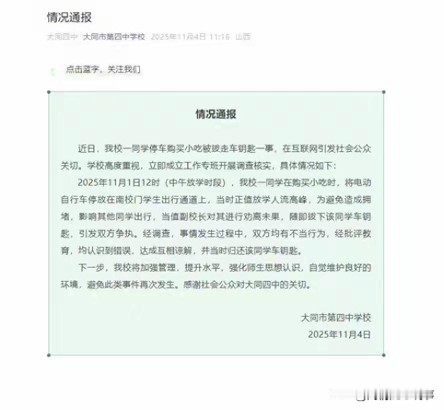 说实话,你觉得大同四中发布的处理公告合理吗? 大同四中拔钥匙事件处理结果公布,