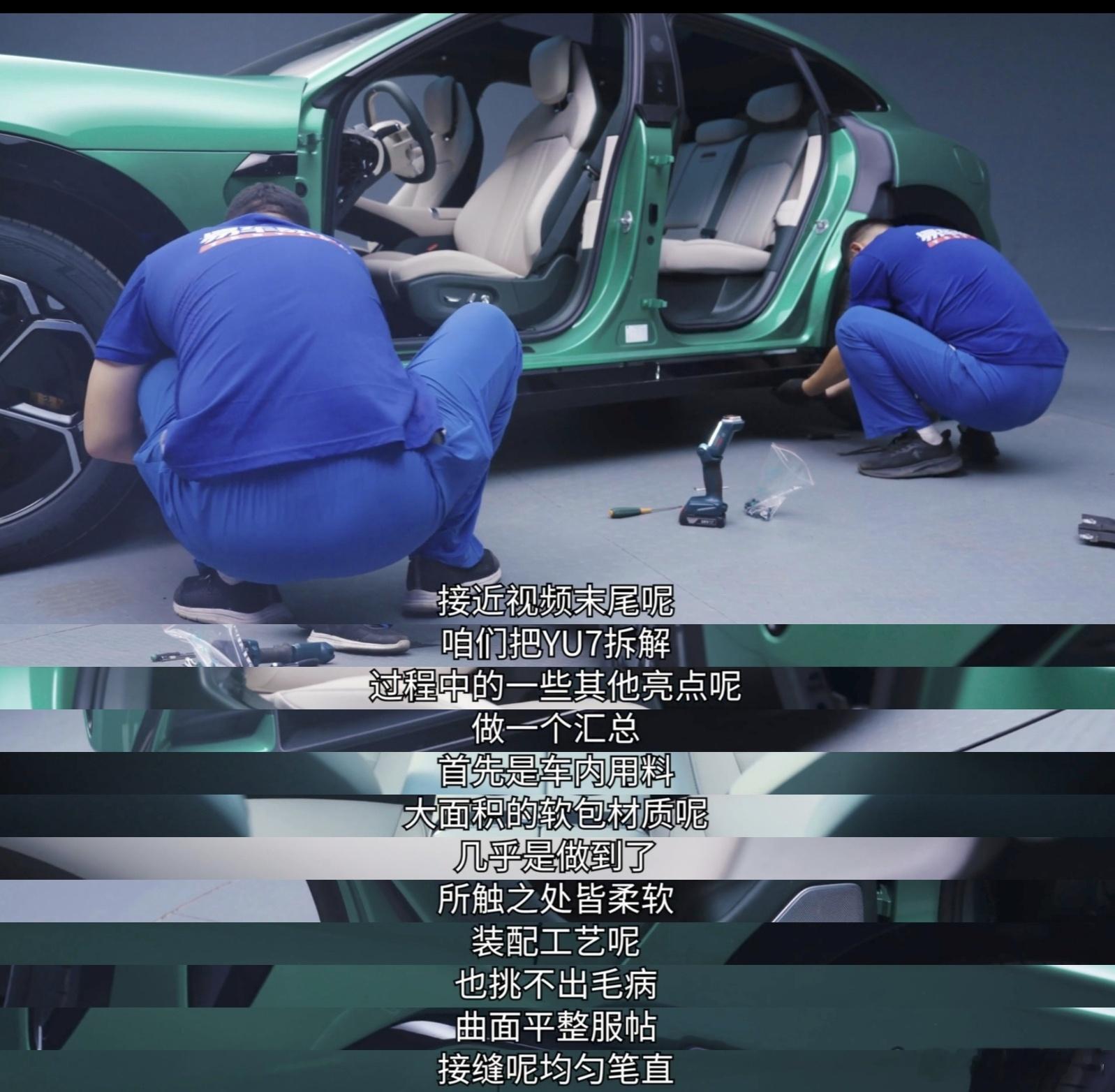看完易车对小米YU7的全网首拆,只能说小米YU7用料是真“实在”,真正把钱都花在了刀刃上。前防撞梁是铝合金“目”字形,又厚又宽,小角度碰撞都能扛住。A柱用的也是超硬钢材,安全感拉满。电池14层防护,底部还有防弹涂层,太让人放心了。双腔空簧+Brembo刹车,NVH也从地毯到后备箱都做了隔音,这良心程度,肉眼可见的实在!而且摸得到的地方全是软包,对于有老人、孩子的家庭来说,这份踏实感真的无可替代[赞][赞][赞]雷军回应小米YU7首拆视频