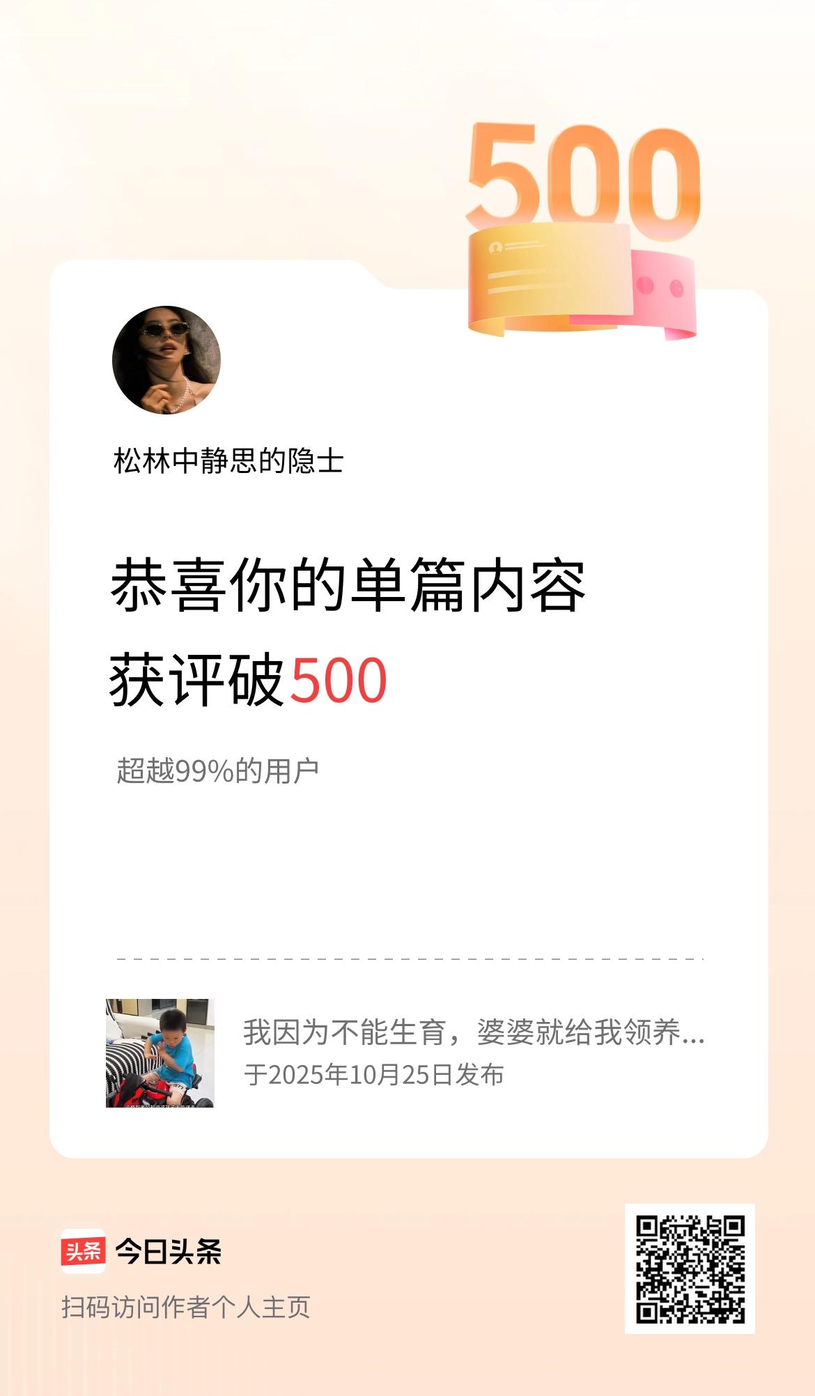 单篇内容获评论量破500啦!