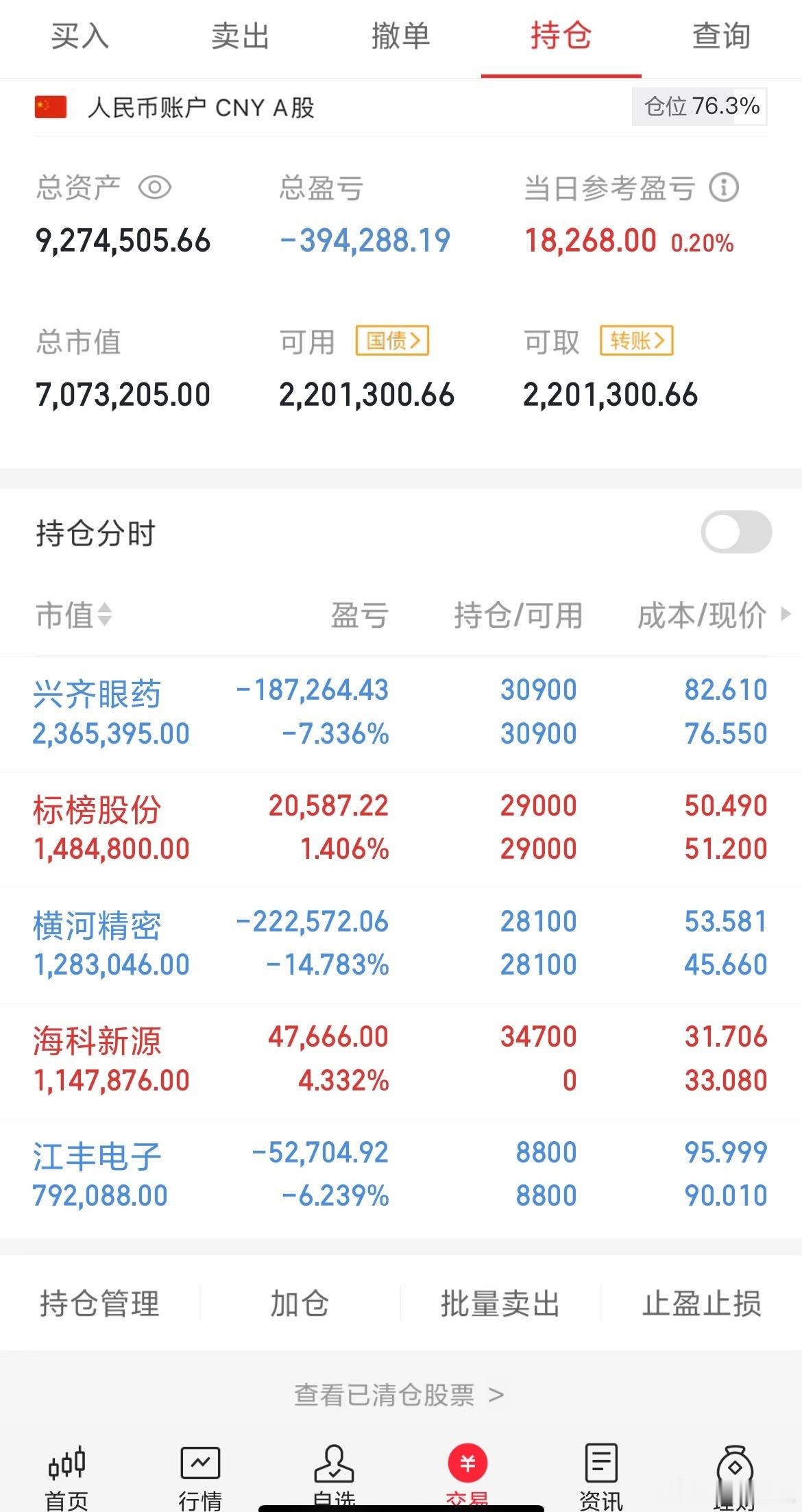 收盘!今还好入场了海科,小盈一点,其它的都继续持有待涨