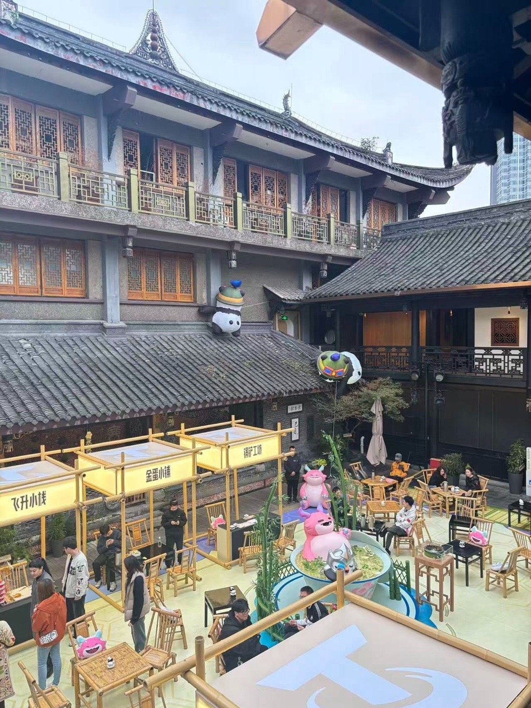 最有川味的棋盘出现了在茶馆下一种很新的棋 大屏这视觉冲击力绝了!胖胖龙在茶碗里萌萌滴,还有冲出来的大熊猫!好可爱!茶社里的熊猫也是陪伴感十足啊,感觉能在这茶社下好久的棋,氛围感MAX