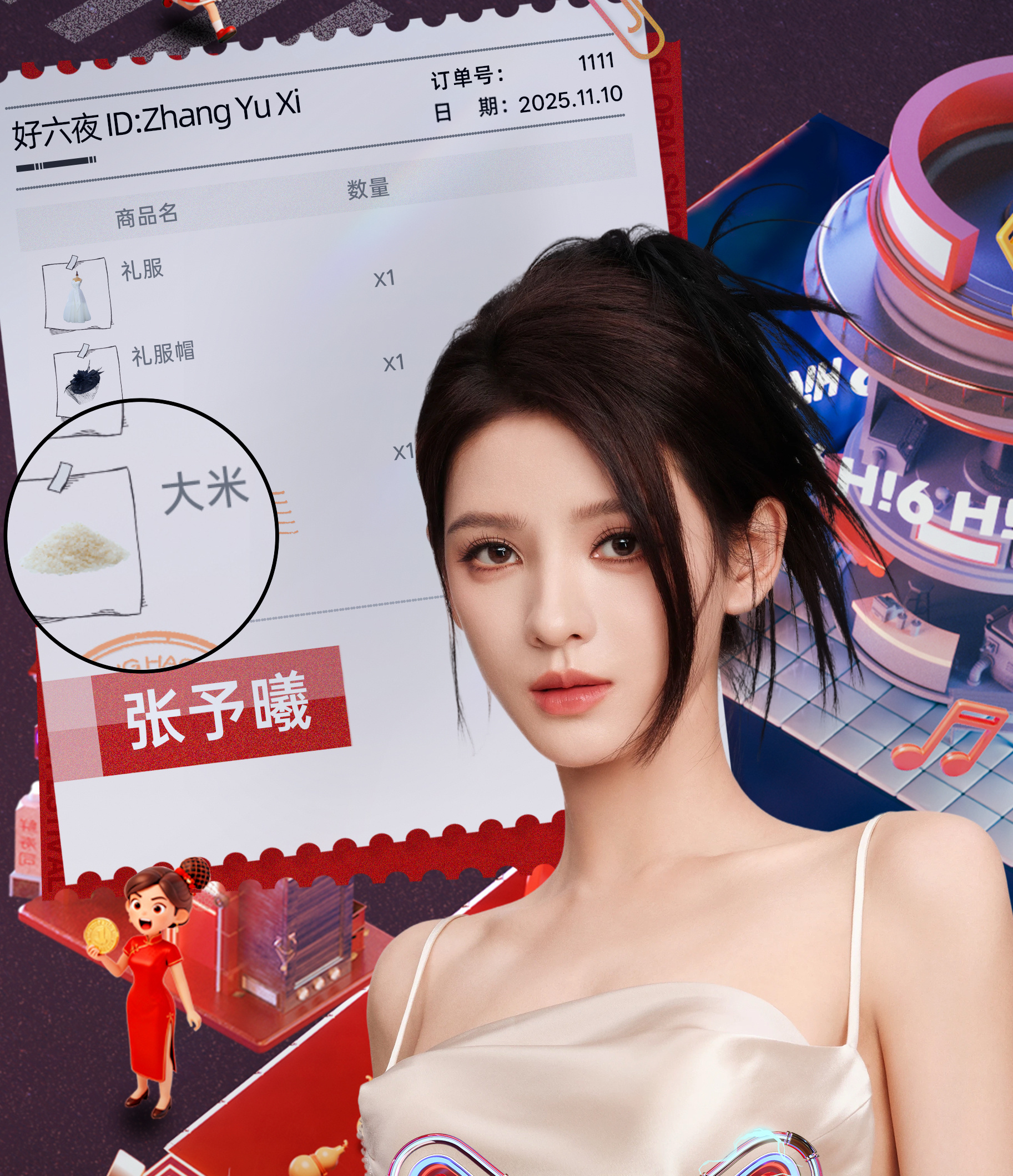 张予曦加盟好六夜的清单太会整活!礼服礼帽的精致感还没褪去,东北大米直接登场,把“干饭魂”焊在身上。