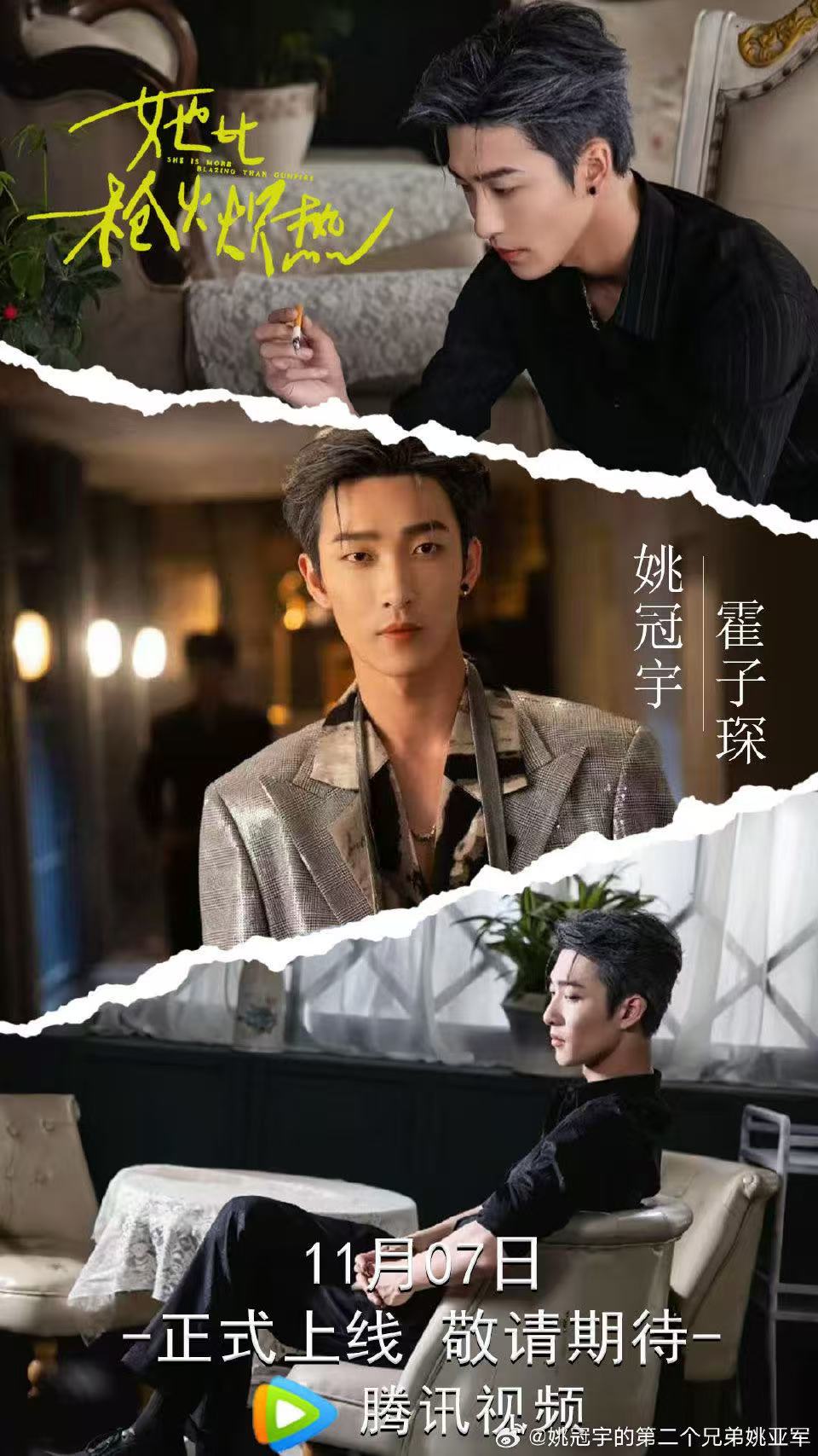 姚冠宇又杀回疯批赛道了 疯批出圈的姚冠宇再献佳作,《她比枪火炽热》定档11.07值得期待。预告里他一步三摇的走路姿态自带氛围,双持手枪的打戏干脆有力,对女主极致的占有欲和保护欲,把疯批感演活了。