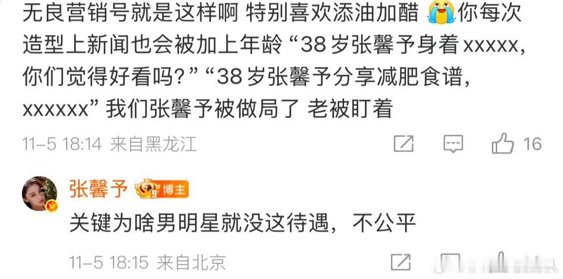 张馨予吐槽现在的新闻不管报道什么都要加一下年龄,报道男明星的事就不这样。还回复了