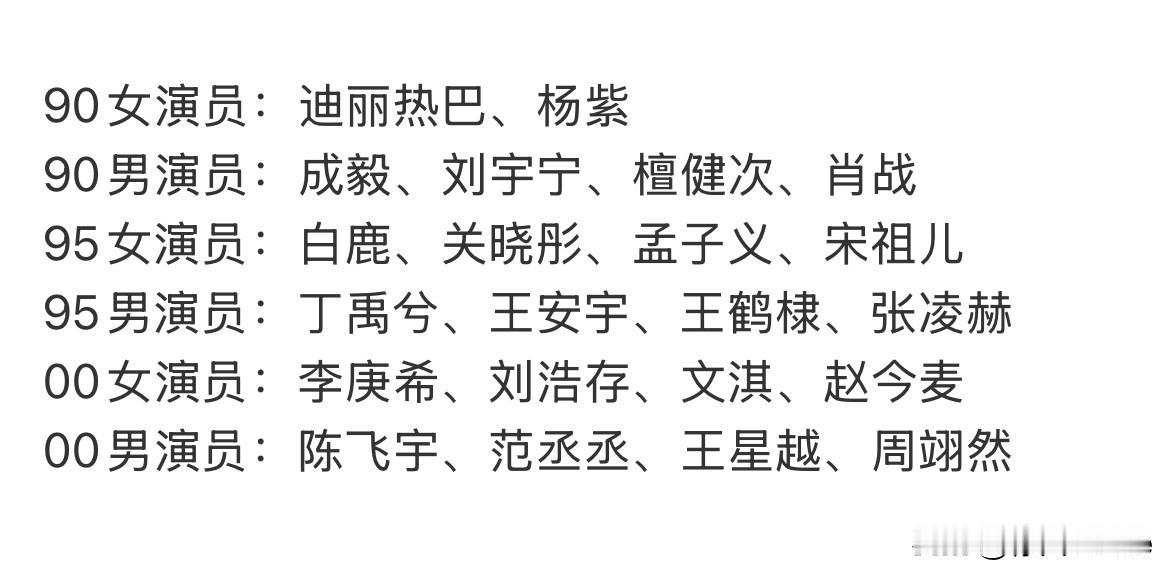 11月5日,50名业内评选出的90,95,00男女中坚力量演员中关注度最高的是9