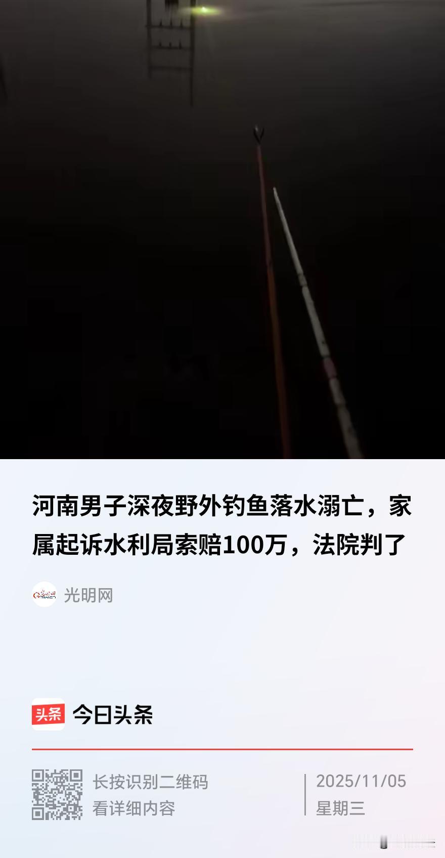 河南,一男子是个经验丰富的钓鱼爱好者,在深夜,不顾朋友提醒,执意到一段荒僻的天然河道夜钓。不料,男子黑暗中脚下一滑,不慎落水,最终不幸溺亡。悲痛之余,男子家人将水利局告上法庭,认为河道边连块警示牌都没有,管理部门难辞其咎。然而,法院的判决出人意料。 赵某和李某是多年的好友,两人都有一个共同的爱好,就是垂钓。对他们来说,钓鱼不仅是一种消遣,更是逃离日常琐事的方式。 2024年9月的一个夜晚,月色朦胧,微风轻拂,赵某提议去附近的河道边夜钓,这条河道是当地一条天然的开放式河流,水流平缓,两岸杂草丛生,平时很少有人夜间光顾。 李某起初有些犹豫,提醒说夜里河边湿滑,可能不安全。但赵某笑着摆摆手,说:“没事,我都钓了多少回了,还能出什么岔子?” 最终,李某被说服了,两人带上渔具,骑着电动车,在凌晨时分来到了河道岸边。 赵某选了一个他常去的钓点,那里靠近河岸,但地势略陡,泥土因前几天的雨水有些松软。 李某则坐在稍远的地方,两人一边聊天一边等待鱼儿上钩。 时间慢慢流逝,夜色渐深,赵某的鱼竿突然有了动静,他兴奋地起身收线,却不慎脚下一滑,整个人失去平衡,跌入了河中。 李某听到扑通一声,赶紧跑过去,只见河水翻滚,赵某的身影很快被水流吞没。 李某惊慌失措,立刻掏出手机报警,并大声呼救。 可惜,深夜的河边空无一人,回应他的只有风声。 很快,救援人员赶到现场,他们动用船只和潜水设备,在漆黑的河水中搜寻。几个小时后,赵某被找到并打捞上岸,但已经没有了生命体征。 随后,医院出具的居民死亡医学证明书显示,赵某系溺水导致呼吸心跳骤停死亡。 这个消息传到赵某家中,他的妻子和年迈的父母悲痛欲绝,赵某是家里的顶梁柱,他的突然离世让整个家庭陷入混乱和绝望。 赵某的家属无法接受这个事实,开始调查事件的原委,他们注意到,案涉河道没有任何安全提示标志,比如警告牌或护栏。 家属认为,水利局作为河道管理部门,有责任确保公共安全,尤其是对这样一条经常有人活动的河道。 家属觉得,如果水利局设置了明显的警示标志,或许赵某会更加小心,甚至避免在夜间垂钓。 于是,赵某的家属收集证据,包括现场照片、死亡证明和报警记录,找到水利局,要求承担赔偿责任,但遭到拒绝。 双方在协商无果后,赵某家属一纸诉状将水利局告上法庭,要求赔偿死亡赔偿金、精神损害抚慰金、丧葬费、被抚养人生活费等各项费用共计100余万元。 法庭上,双方展开了激烈的辩论。 赵某家属指出,这条河道附近居民常来垂钓或散步,水利局应当预见到潜在危险,并采取基本的安全措施,比如设置“水深危险”的标识。 家属在陈述时声泪俱下,描述赵某生前是个谨慎的人,如果不是环境缺乏提示,他不会贸然冒险。 水利局则反驳说,赵某的行为属于自甘风险,他明知夜间垂钓有溺亡的可能,却仍选择前往,这应当由他自己承担后果。 法院会如何判决呢? 《河道管理条例》第四条等规定,水利局对河道的主要管理职责在于,确保河堤稳固、保障河道行洪畅通、维护防洪安全。 法院指出,水利局的法定职责主要是保护“河道两侧人民群众在行洪时的生命财产安全”,不宜将这种管理职责无限扩张解释为需要对每一个进入河道区域的个体在任何时间、从事任何活动都承担安全保障义务,缺乏法律依据,也远超合理注意范围。 本案中,案涉河道作为天然水域,其存在的溺水风险是公开的、常识性的,尤其对于像赵某这样有垂钓经验的成年人而言,更是理应知晓。 水利局并未将该河道开辟为公共浴场或垂钓园并从中营利。 因此,在法律上不能强加其必须设置全覆盖警示标志的义务,未能设置标志,在本案特定情境下,不当然构成法律意义上的“管理过错”。 相反,《民法典》第一千一百七十三条规定,被侵权人对同一损害的发生或者扩大有过错的,可以减轻侵权人的责任。 第一千一百七十四条规定,损害是因受害人故意造成的,行为人不承担责任。 法院认为,赵某是具备完全民事行为能力的成年人,且是资深垂钓爱好者,能够理解在深夜、到偏僻的天然河道岸边进行垂钓活动所伴随的一系列风险。 然而,赵某自甘风险深夜到偏僻的天然河道进行垂钓活动,将自身置于危险境地,法律上即视同其已接受并愿意承担与之伴随的潜在危险。 即使退一步讲水利局存在管理上的不足,如未设标志等,但赵某“自甘风险”的行为是导致损害后果发生的更直接、更主要的原因。 所以,赵某对于本次事故负有首要责任。 最终,法院判决驳回赵某家属的全部诉求,诉讼费由赵某家属自行承担。 这个案件告诉我们,当一个人明知某项活动有危险,却自愿参与时,他就需要为自己的选择负责。赵某的遭遇令人同情,但法律不能因情感而偏离公 正。 对此,您怎么看?