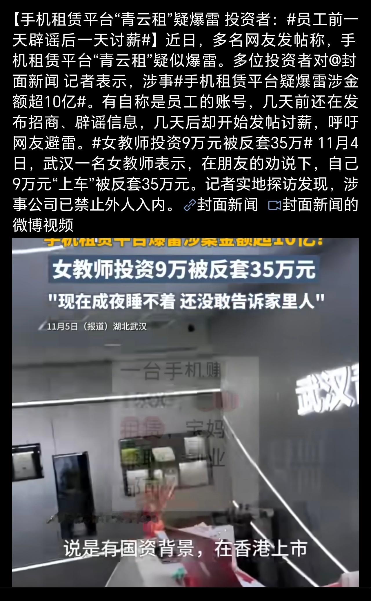 手机租赁平台疑爆雷涉金额超10亿爆雷了才知道手机租赁业务,不好意思,村通网才……