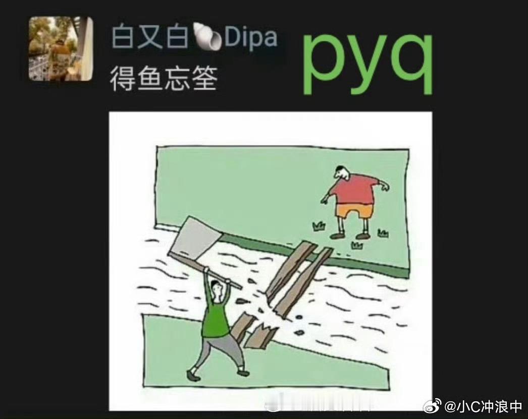 前一天发的是“得鱼忘筌”配图“过河拆桥”!