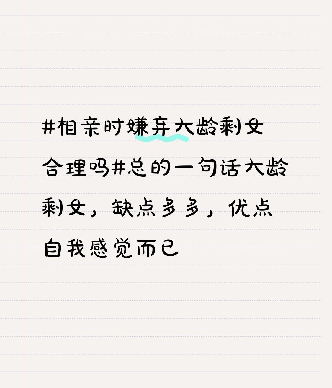 相亲时嫌弃大龄剩女合不合理,这事儿得分开看。有人觉得大龄剩女缺点多,可这观点太片面。 很多大龄剩女其实很优质,她们外表漂亮,工作好,能自己买房买车。但在相亲市场却成了鄙视链底端,同龄男士大多拒绝她们。理由一是觉得她们情商低、不好相处;二是占不到便宜,人家自己有房有车有高薪,男人觉得不划算;三是担心生育问题。但这些理由都挺自私的。不能仅因为年龄就否定一个人,每个人都有自己的生活节奏,大龄剩女也有很多闪光点,不该被无端嫌弃。