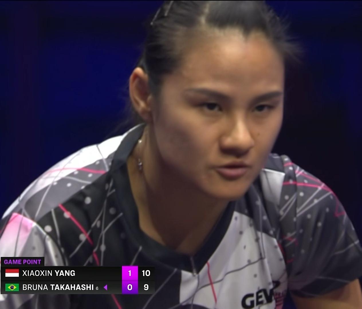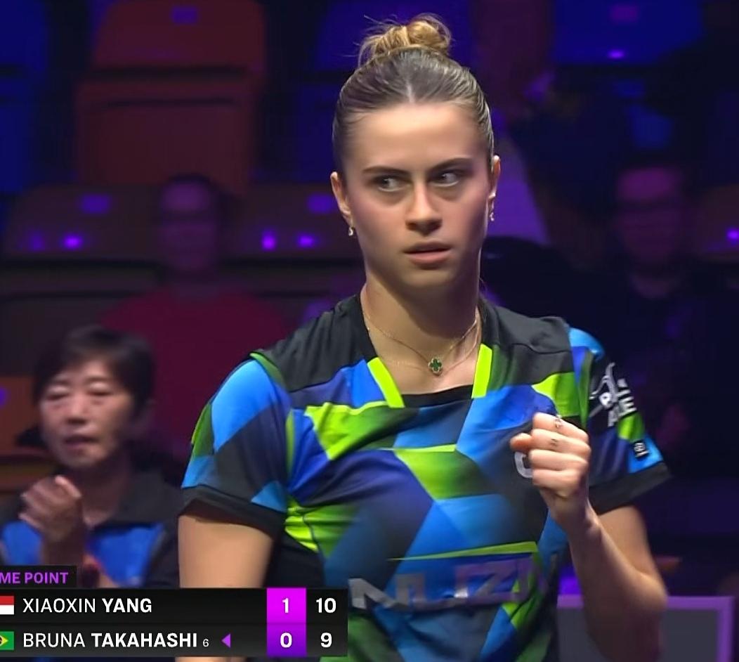11月5日,法兰克福冠军赛,女单1/16决赛,杨晓馨2-3布鲁纳 开局杨晓馨打得挺稳的,11-8拿下首胜。第二局可惜了点,关键时刻发球自杀,10-12被布鲁纳追平大比分。 第三局布鲁纳稳定性提高了不少,8-11再拿一局,大比分2-1反超。第四局的局未杨晓馨打得非常坚定11-9,双方2-2战平。 决胜局:2-7布鲁纳很快建立大比分优势,4-7暂停,6-11布鲁纳胜出。 下一轮:汉娜·高娜VS布鲁纳 稍早前的两场比赛,张本美和直落三局打败张安,林昀儒3-2险胜篠塚大登