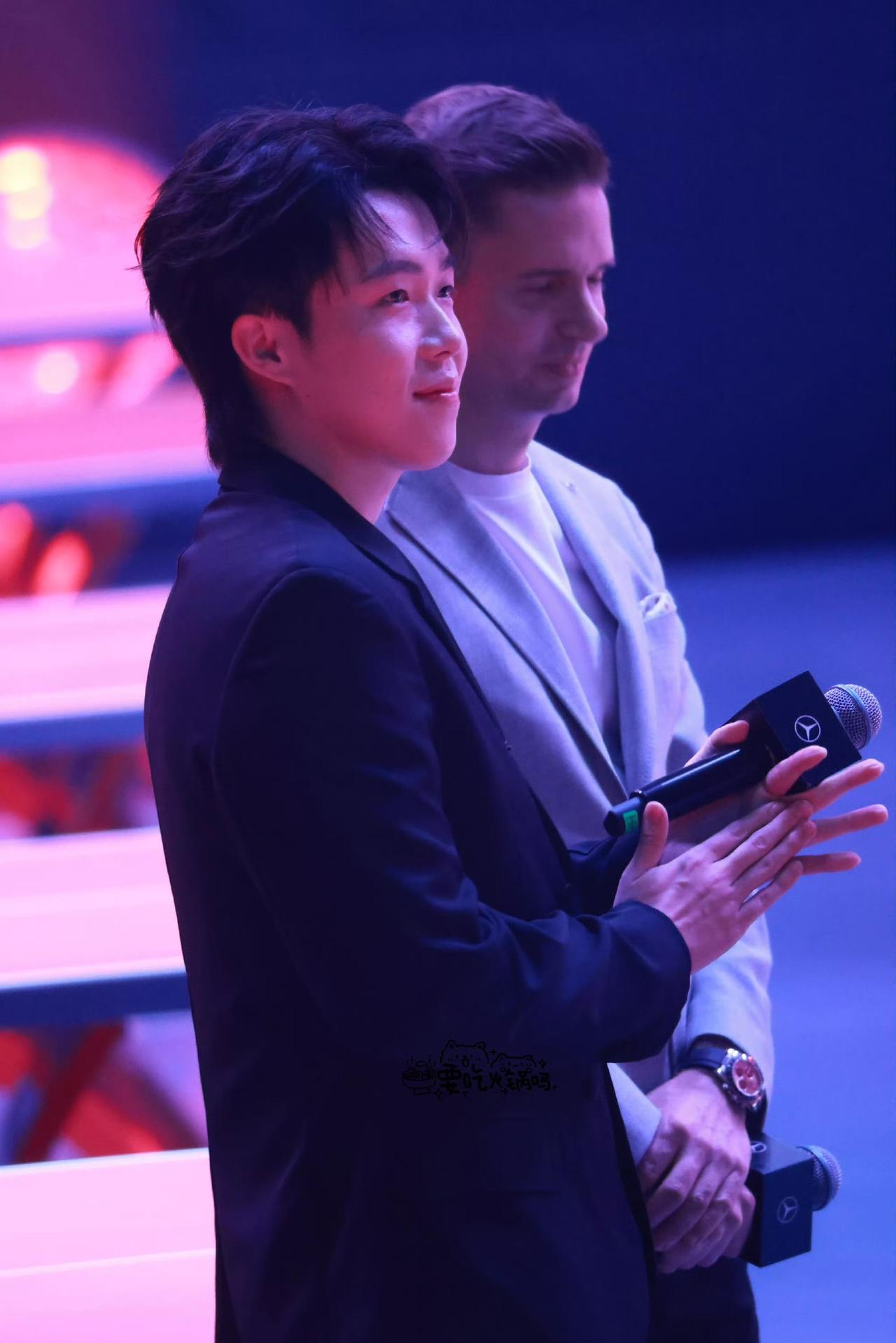 孩子们都好喜欢王楚钦,王楚钦摸摸孩子的头,一脸的有爱。 和董事长一起候场, 举