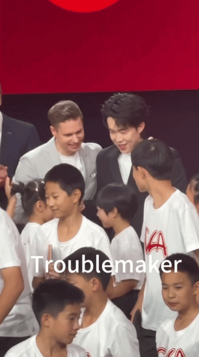 孩子们都好喜欢王楚钦,王楚钦摸摸孩子的头,一脸的有爱。 和董事长一起候场, 举手投足,面部的表情,都写满了好的素养。 孩子们上场合影时,都和楚钦哥哥打招呼, 王楚钦也非常有耐心, 摸摸他们的头,和他们互动, 大家都很开心。 离场时,孩子们还不忘和他打招呼, 王楚钦也是一脸的微笑。 竖大拇指,大家一起合影, 董事长看的出来是真的喜欢楚钦, 一起出场,一起发言, 结束的时候,握手感谢。