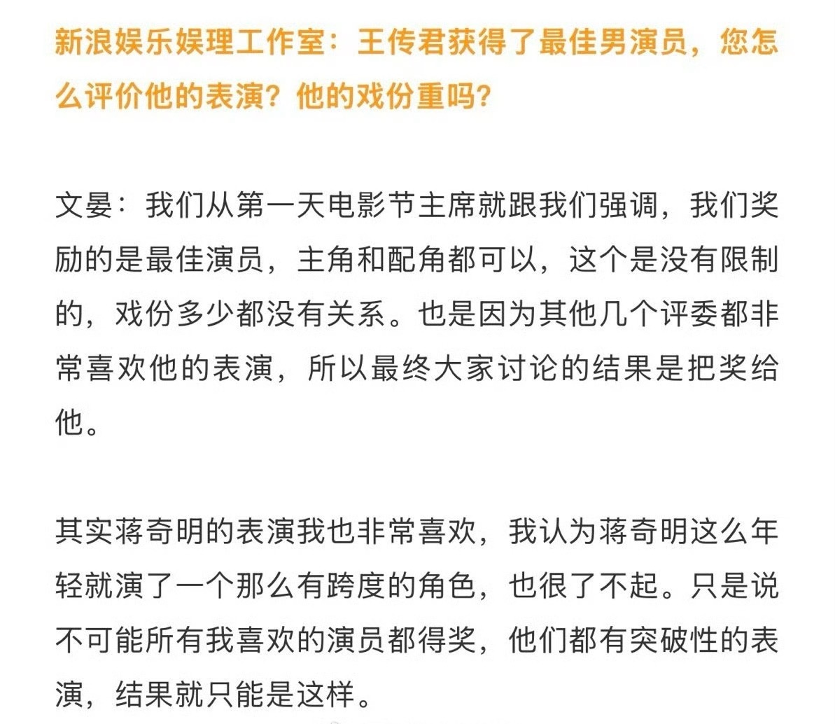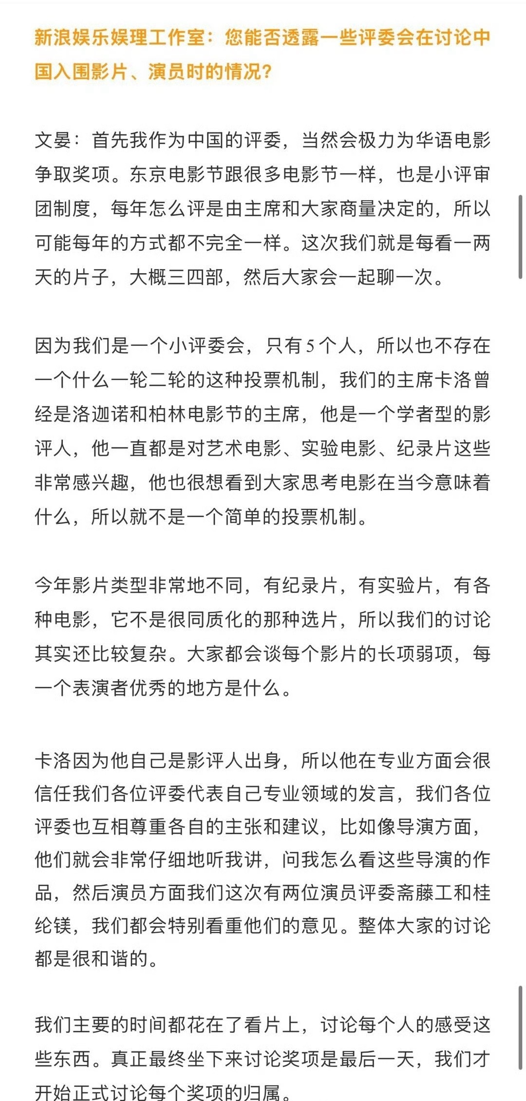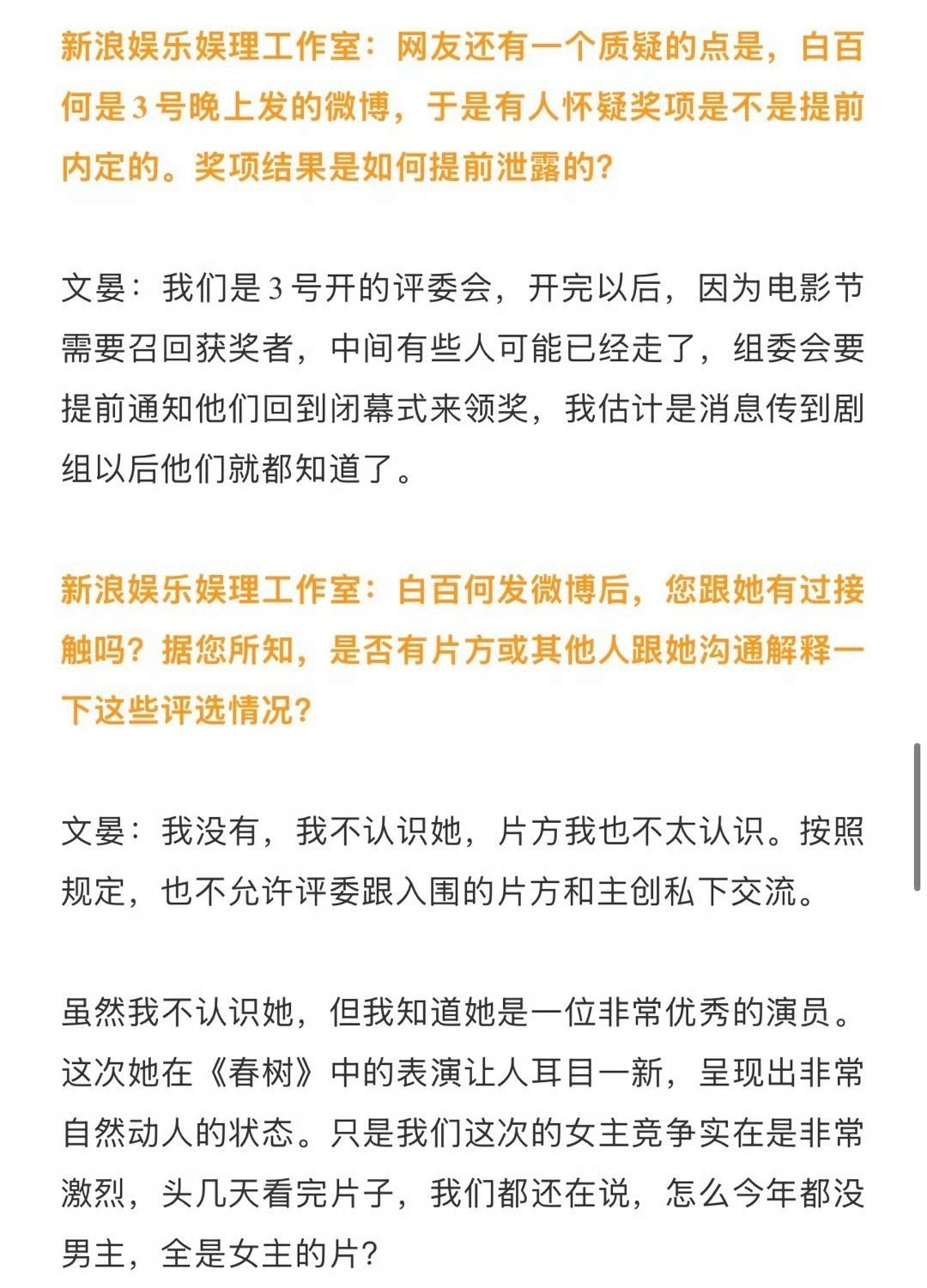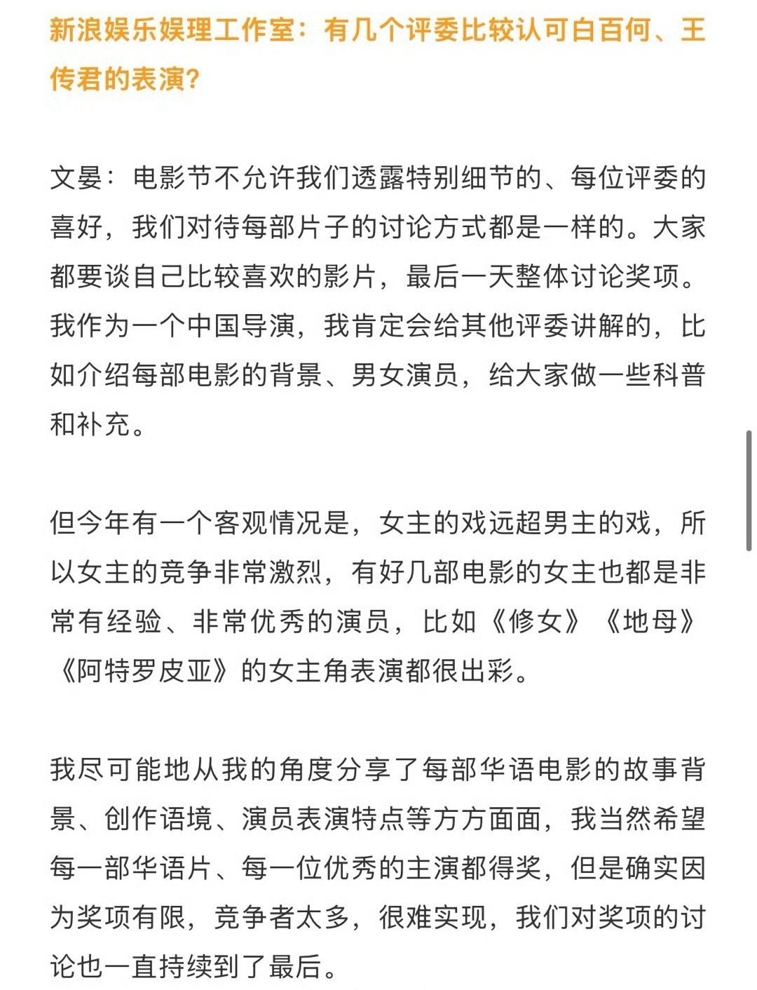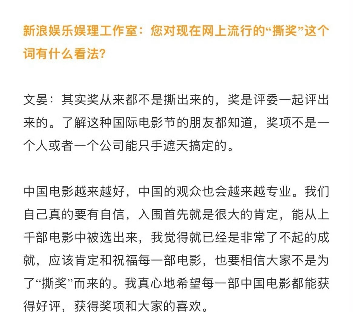 文晏接受了采访回应网上对她当评委的质疑: