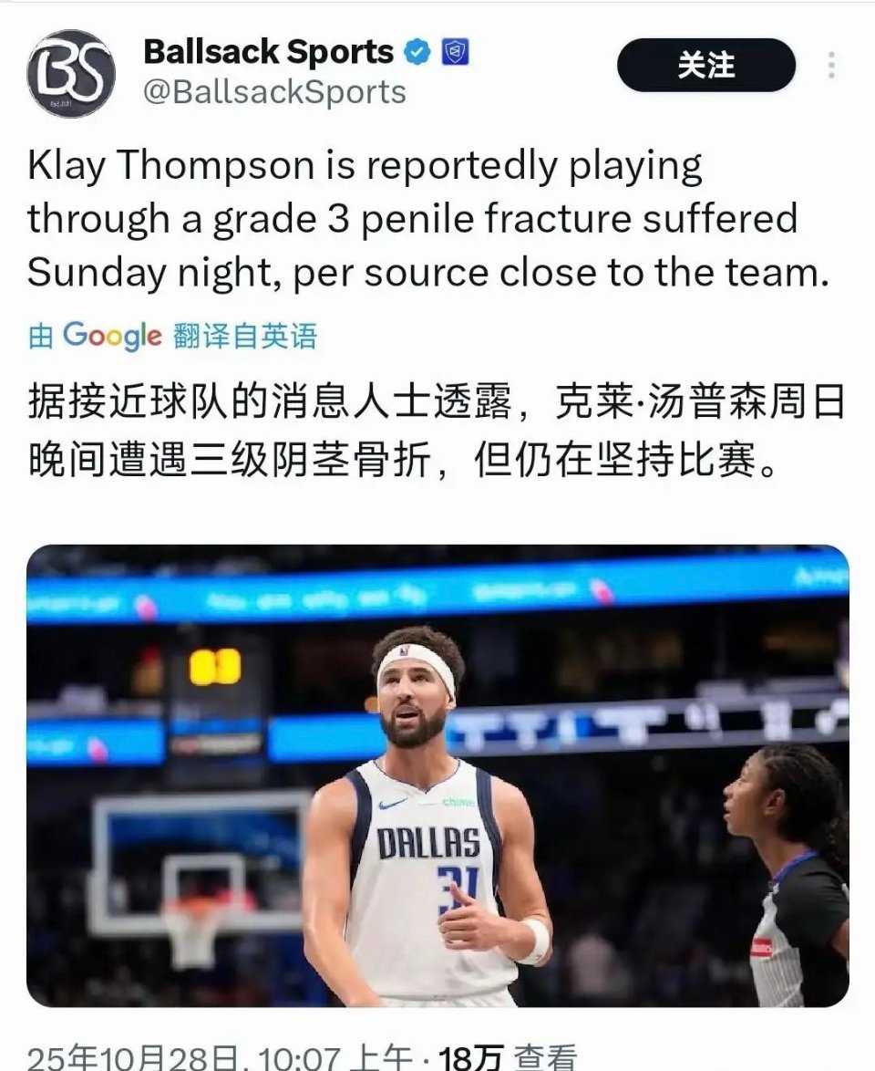 第一个:克莱汤普森的丁丁并没有三级骨折