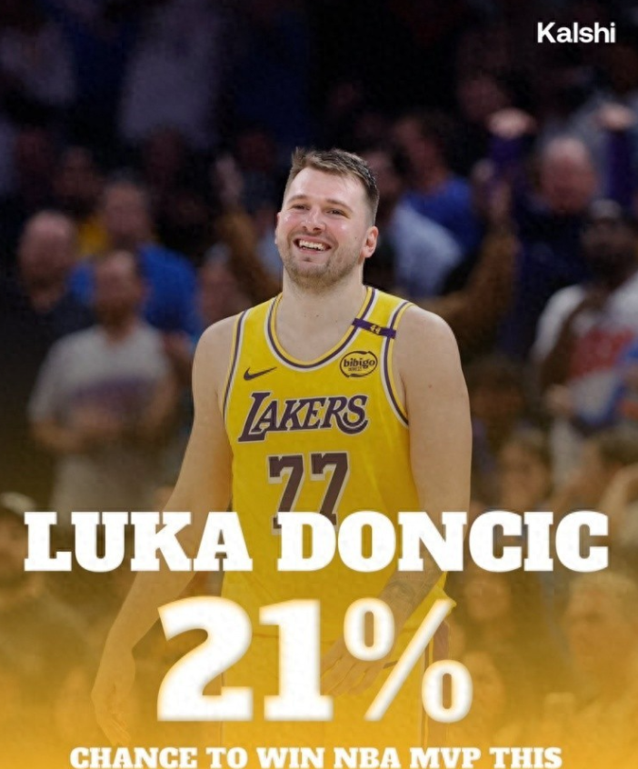 据来自市场预测机构KALSHI的数据,东契奇获MVP概率上升7%,排名第三,而文