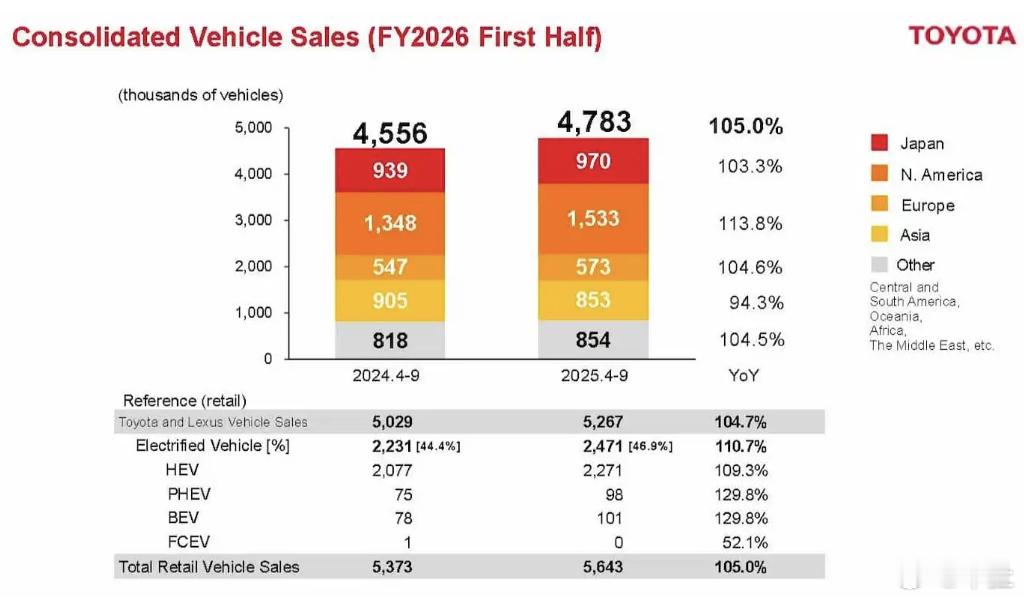 丰田称来自全球客户的强劲需求推动了销量增长,尤其是在日本和北美市场。混合动力汽车是增长的主要驱动力,在北美和中国等竞争激烈的市场需求尤为旺盛。