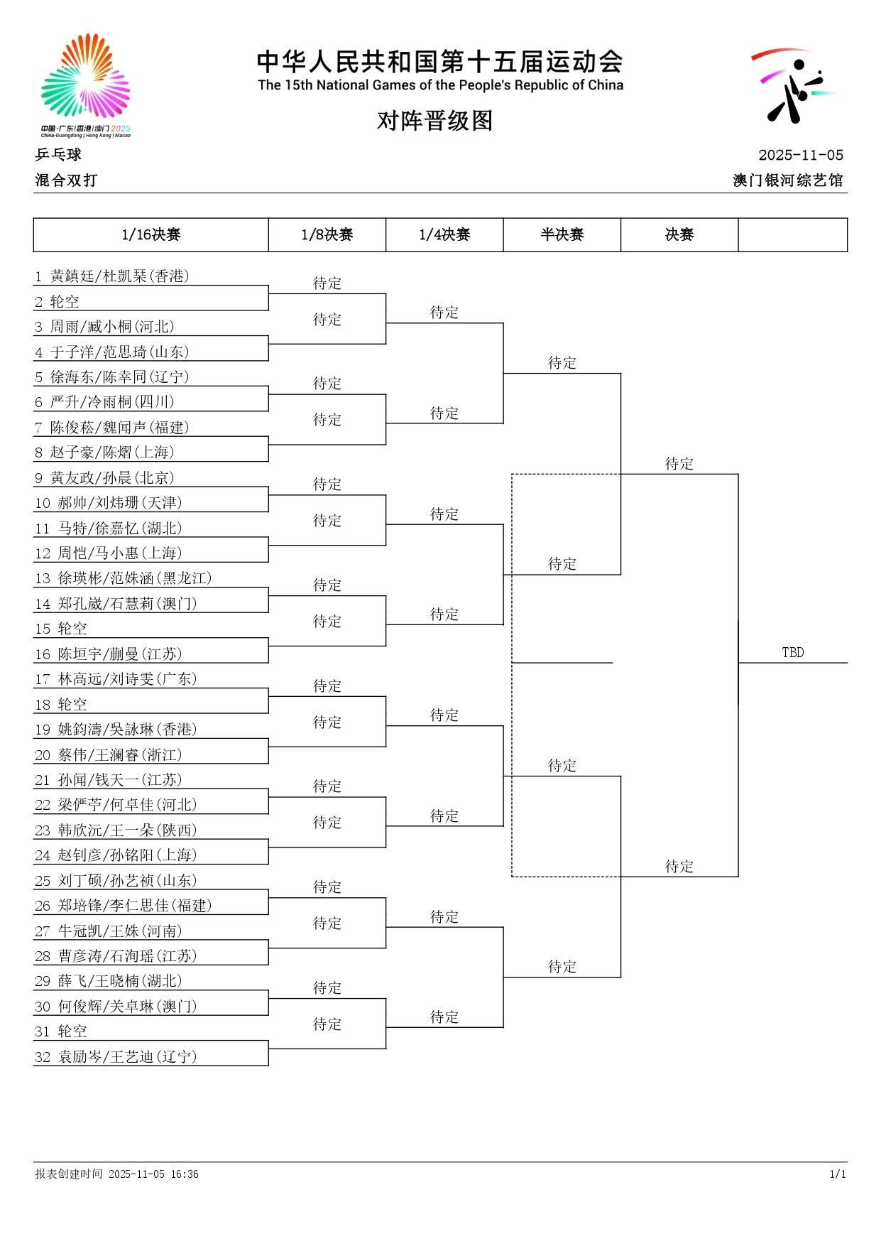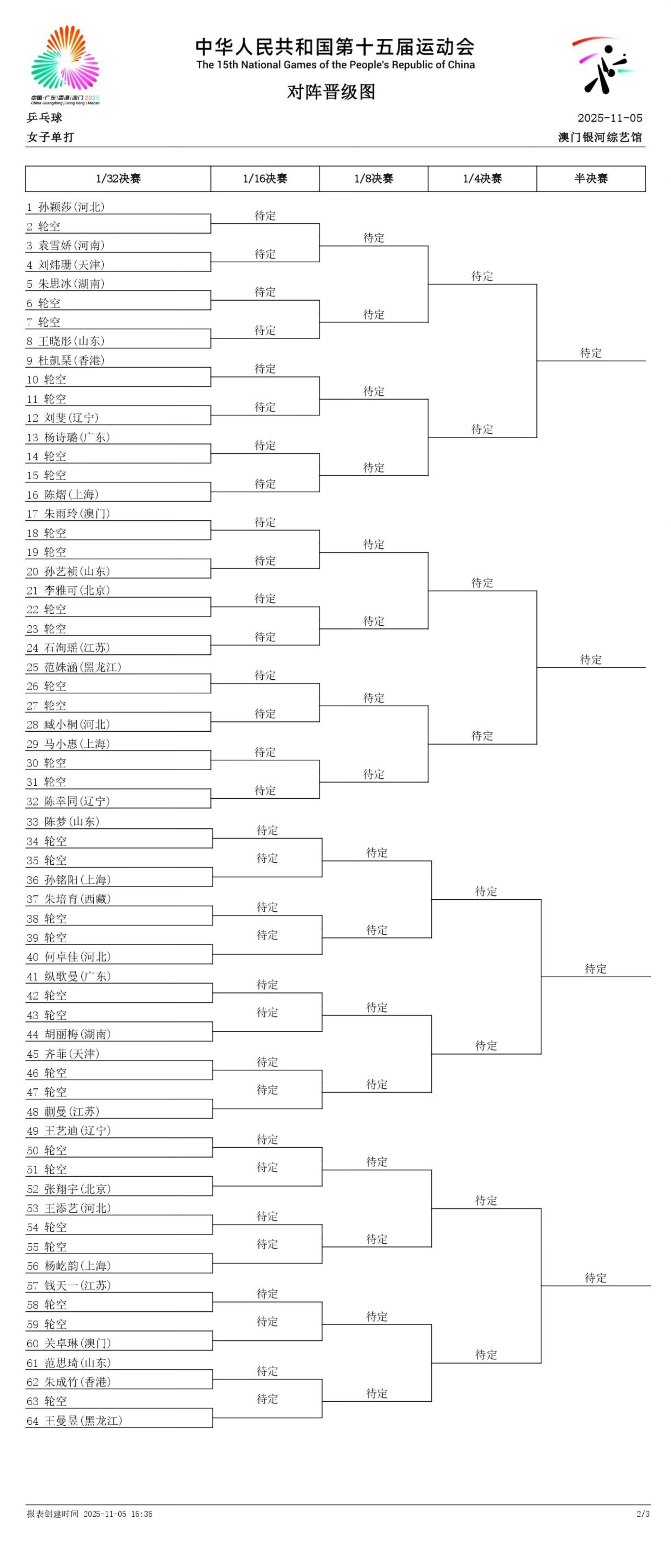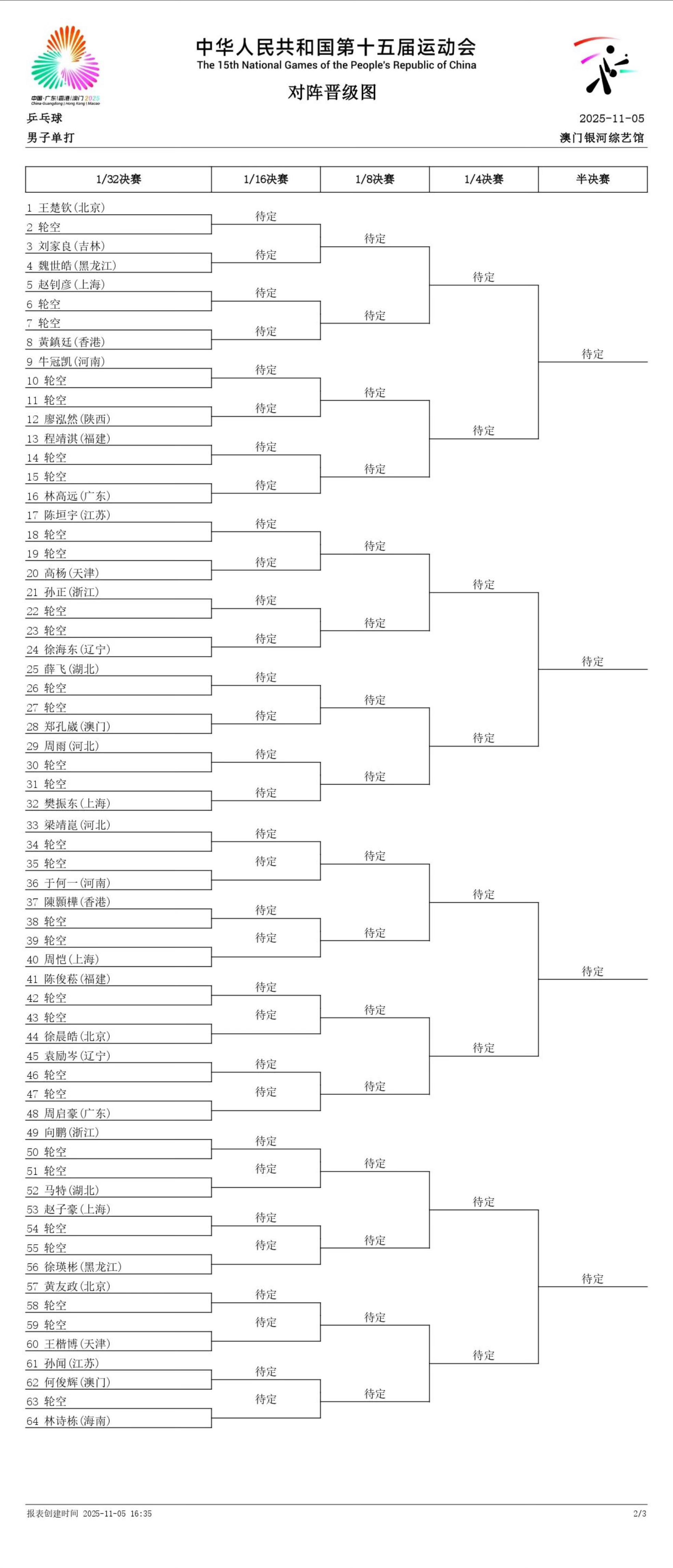 全运会 成人组签表图