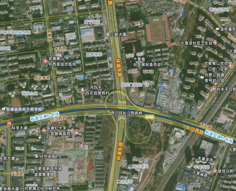 最遗憾的立交,长江西路与西二环立交。 在建设西二环快速路的时候没有建设高架,也没有和长江西路形成互通立交。 实属合肥市交通建设中的一大遗憾,也为现在带来了不可逆的交通拥堵的一大堵点。