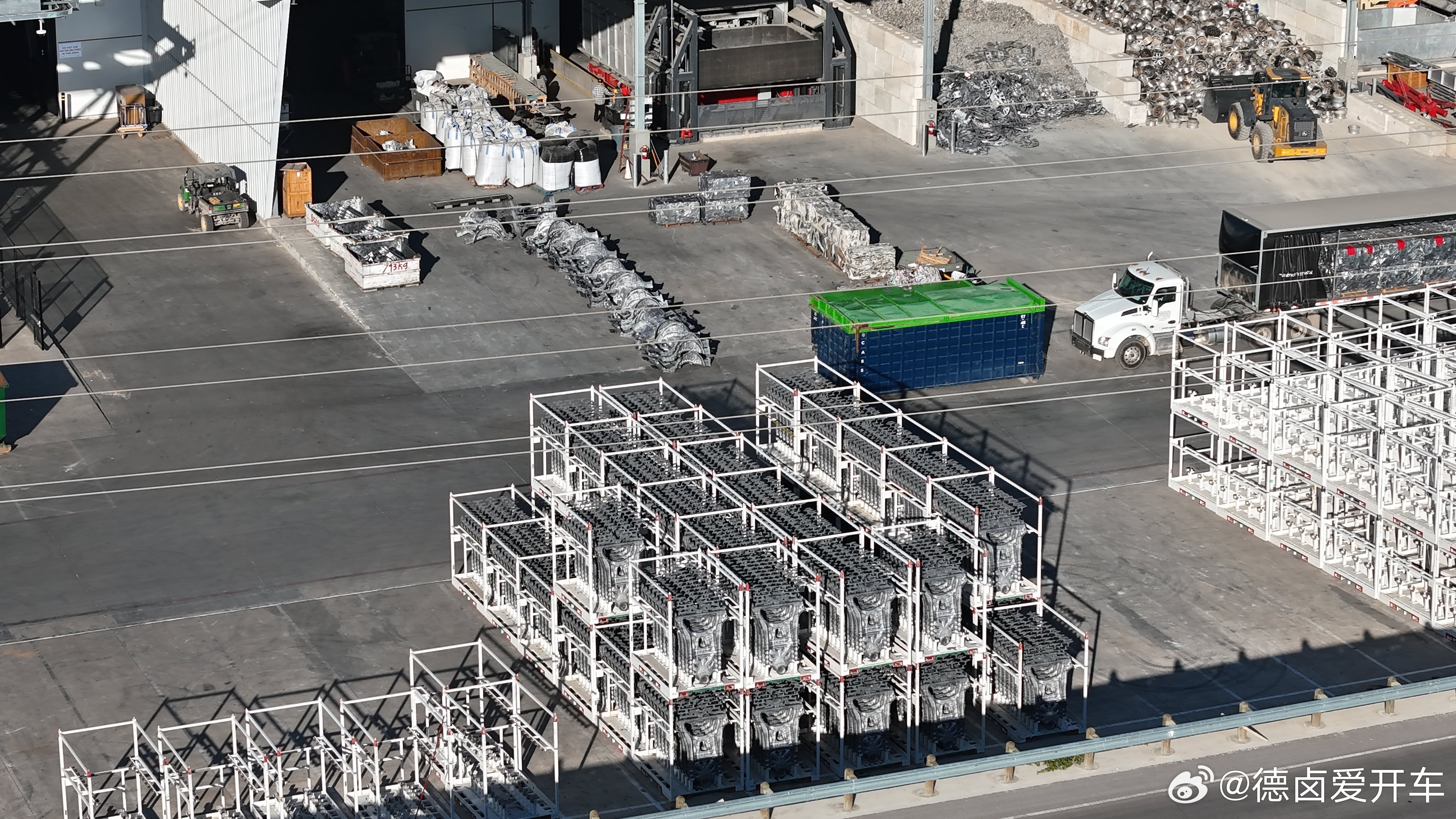 数百个 特斯拉Cybercab后副车架堆在车间外,