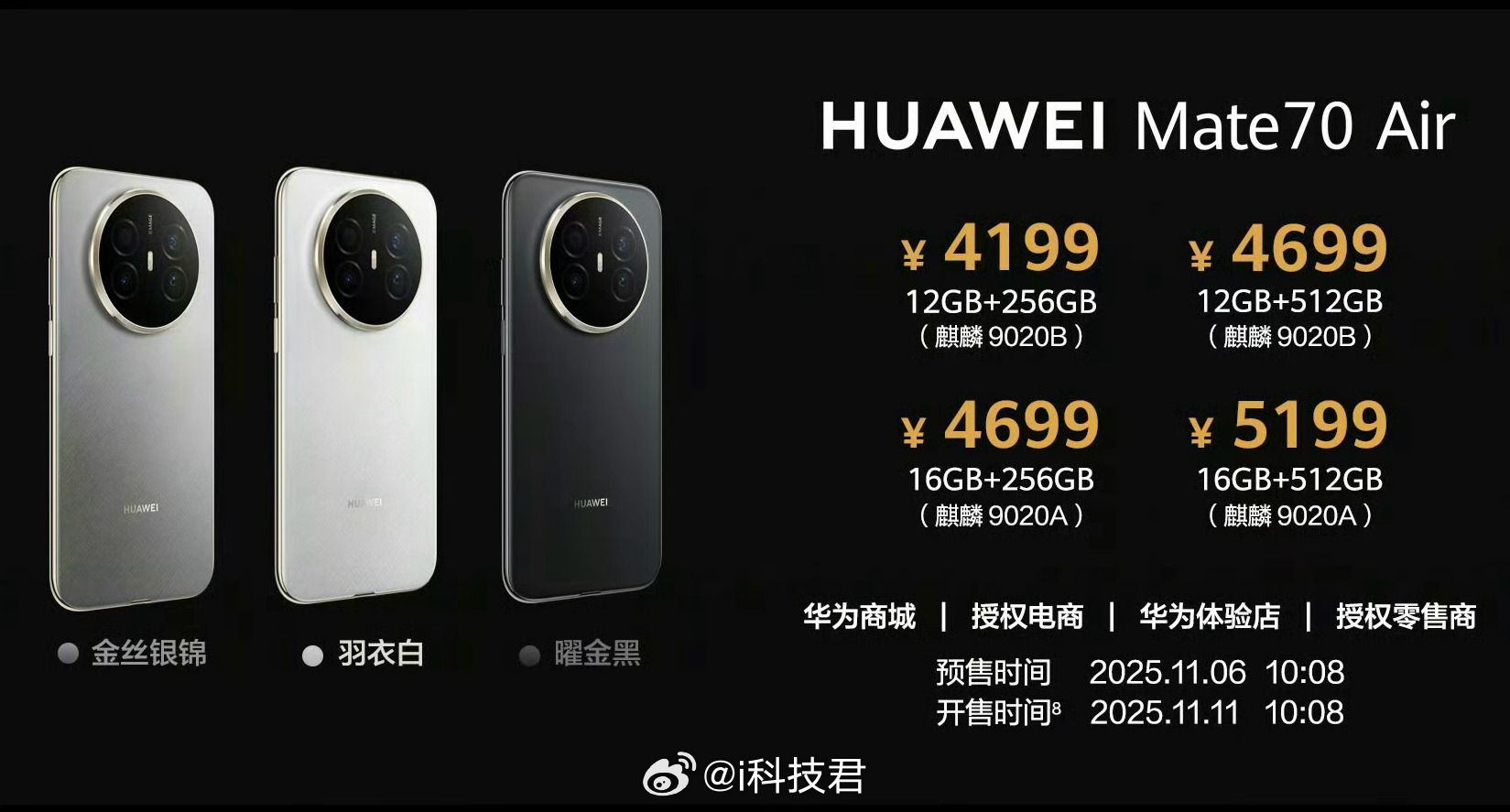 12G用的是麒麟9020B,16G用的是麒麟9020A 处理器新机来了