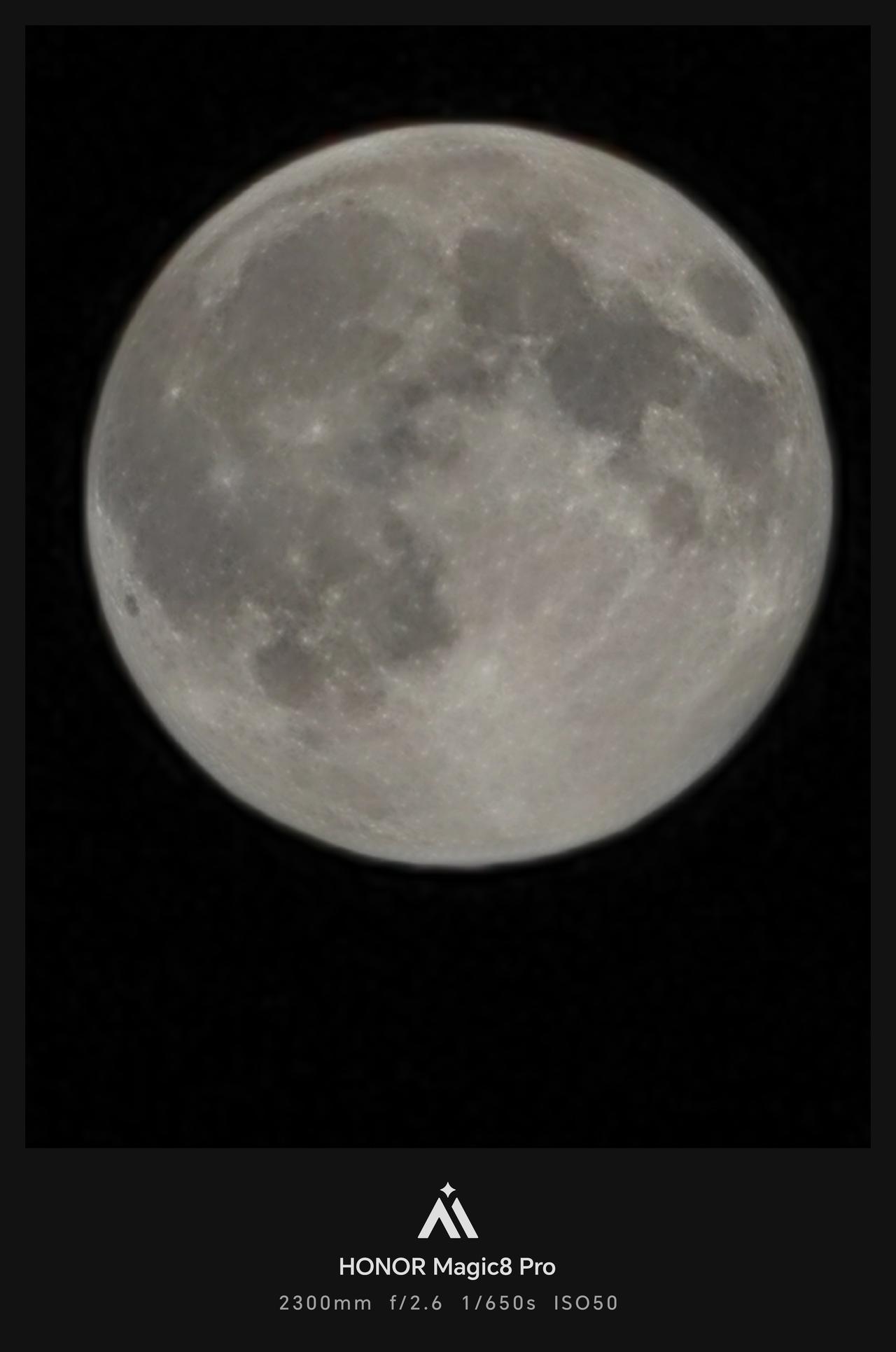 昨晚用荣耀Magic8 Pro拍的月亮(图一),黑色金框水印很搭,后面两张是AI追色,别有一番风味。 在影像上,荣耀确实是越来越好太多了,忍不住想多拍些不一样的风景,多用用AI追色。