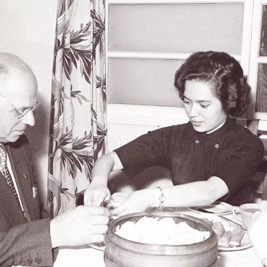 1957年,蒋纬国和妻子邱爱伦新婚当天,一张罕见的合影,当时他们举行了宴会,很多