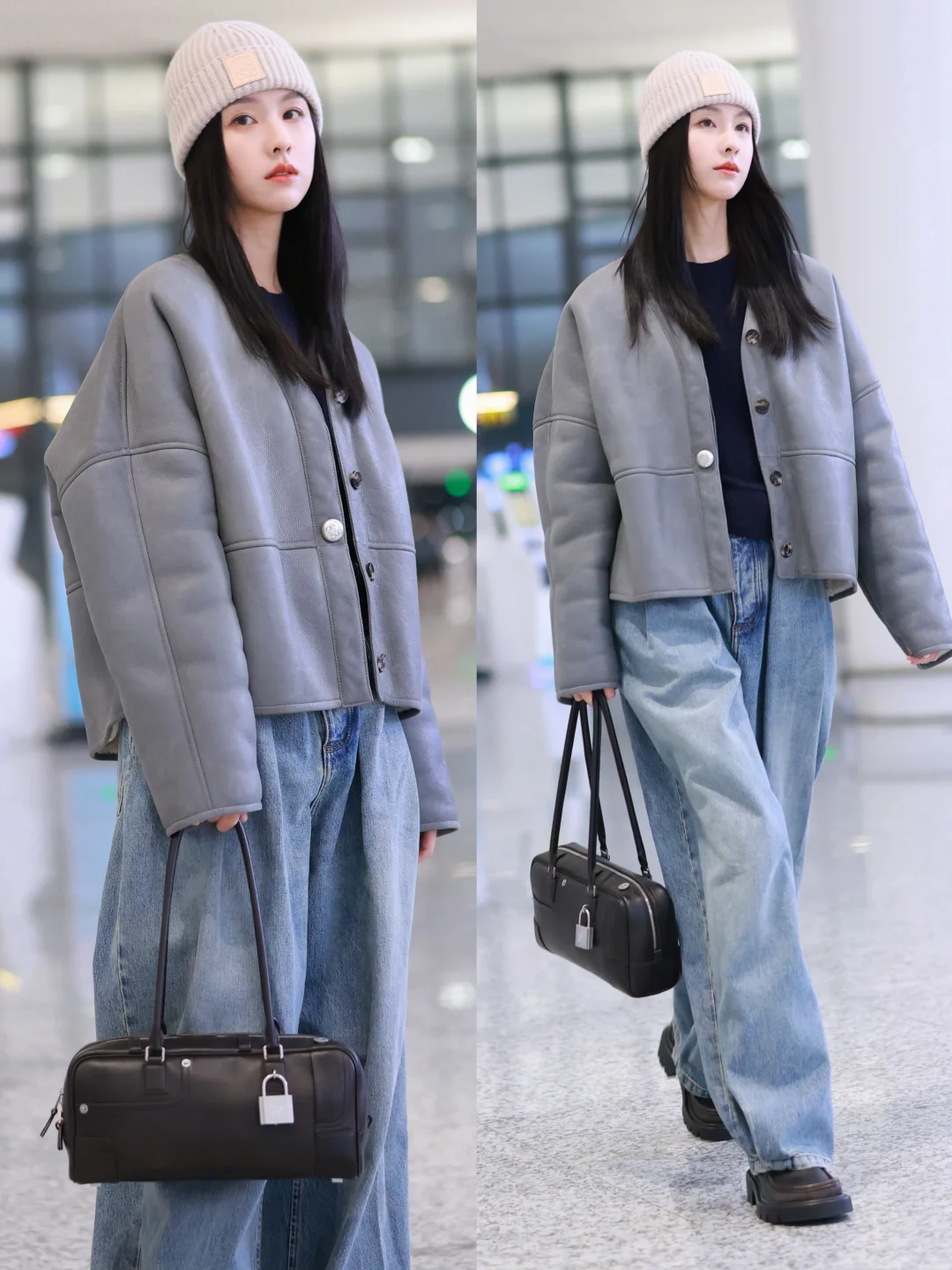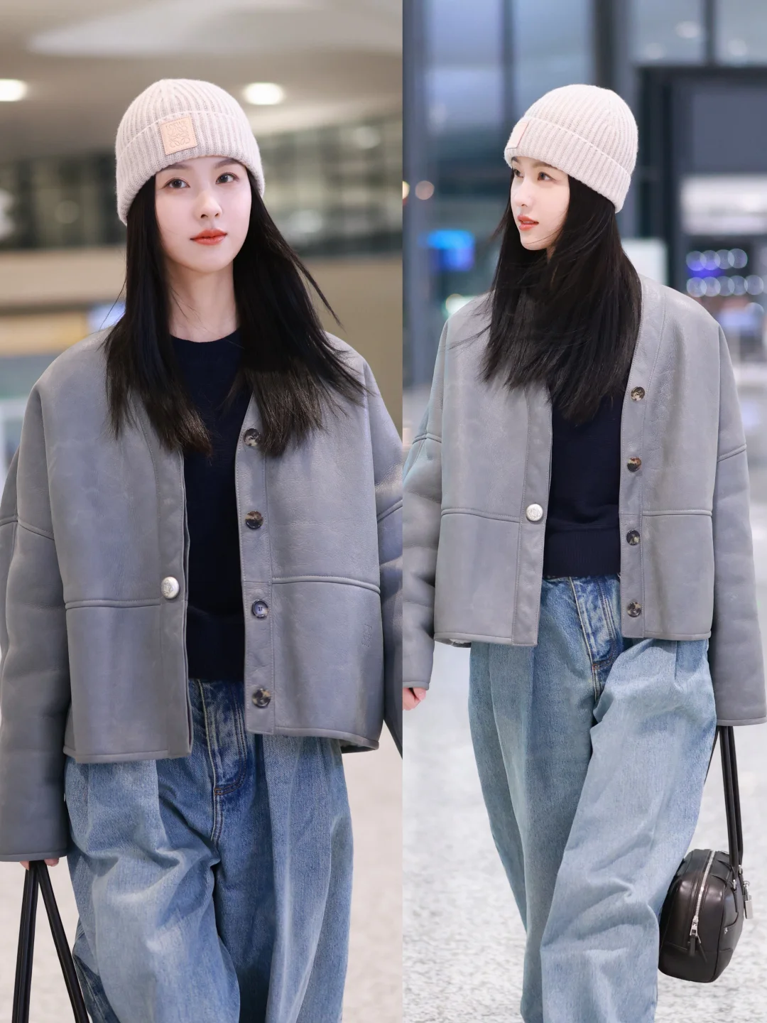 陈都灵机场街拍私服,干净的气质扑面而来,简单随性的穿搭就很美! 图片来源于陈都灵工作室