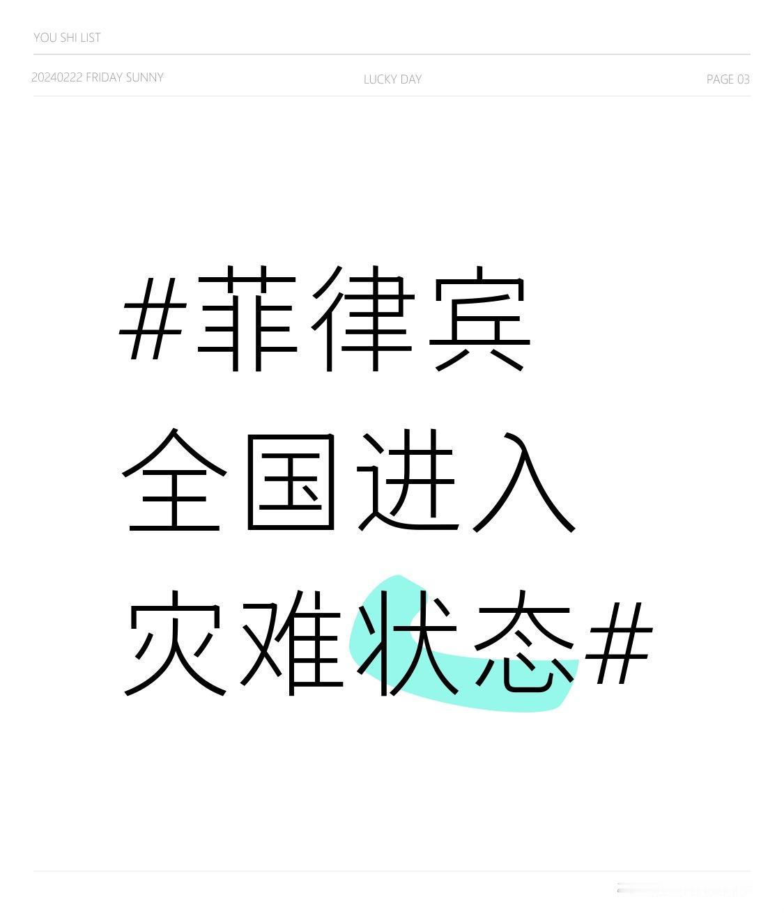 菲律宾全国进入灾难状态 菲律宾全国进入灾难状态,这情况听起来就挺严重。据说台风“杜苏芮”给菲律宾带来了狂风暴雨,多地出现洪水、山体滑坡等灾害。 很多房屋被冲毁,人们被迫离开家园,生活陷入困境。像这种自然灾害面前,人命和财产损失都难以估量。菲律宾本身经济和基础设施建设可能就面临一些挑战,这灾难一来更是雪上加霜。希望菲律宾能尽快度过难关,也希望国际社会能给予一定援助,让受灾群众早日恢复正常生活。