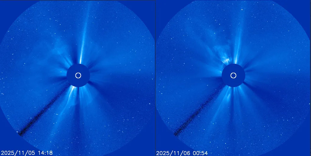 【#未来三天或现大地磁暴#】#我国北部可能出现红绿极光#11月6日,据中国气象局国家空间天气监测预警中心消息,未来3天或现大地磁暴。北京时间11月5日晚间19时19分以及11月6日的清晨06时07分,太阳再次耀斑两连暴,最大强度分别为M7.4级和M8.6级,并伴随较为明显的日冕物质抛射(CME)。受此影响,未来三天可能发生较强地磁活动。我国北方大部地区都有机会看到极光,黑龙江漠河、新疆、内蒙古等地甚至有机会出现红绿复合极光。