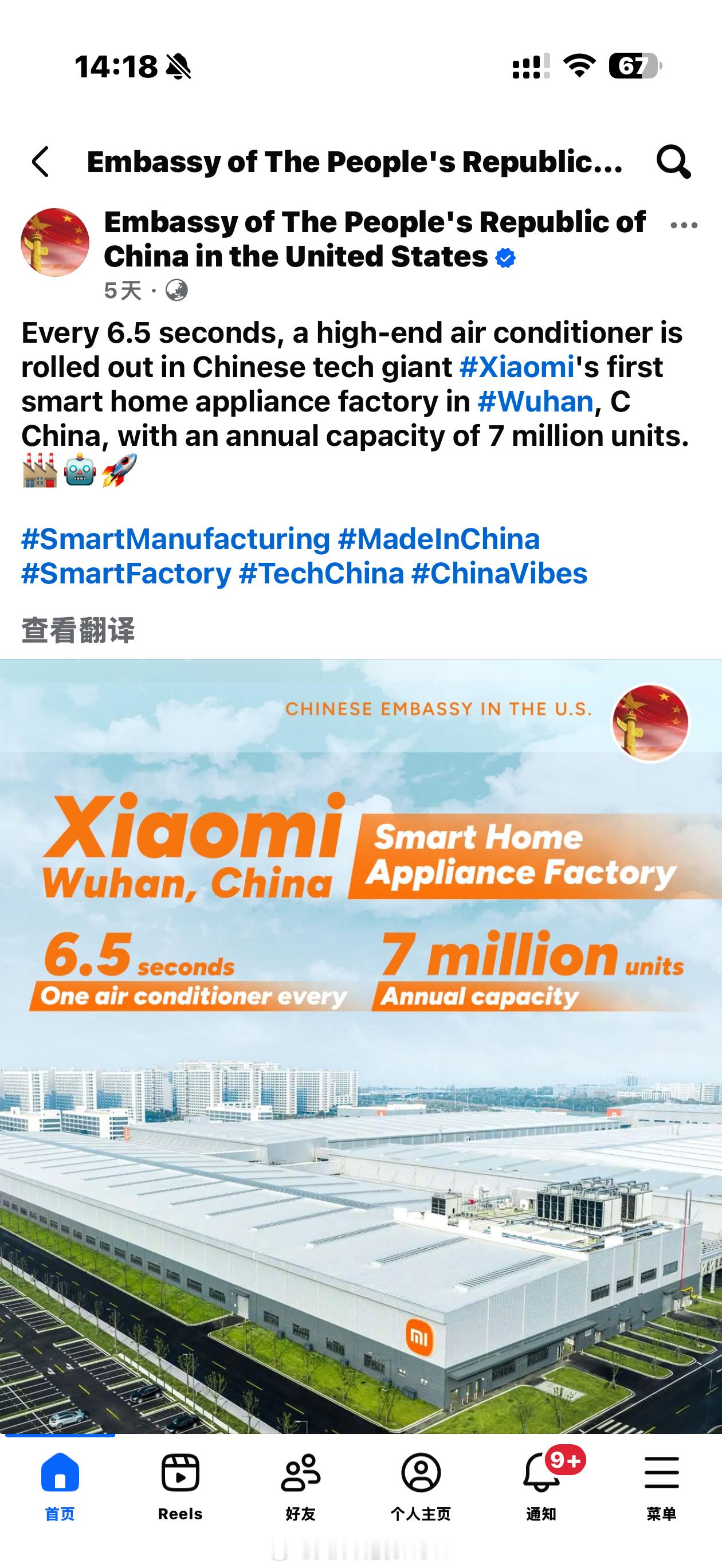驻美大使馆为小米大家电智能工厂点赞了,很感慨,现在中国智造早就不是说说而已,从细节到技术都在慢慢打磨。