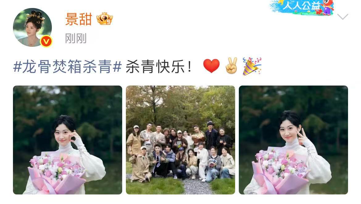 景甜杀青晒照景甜捧花杀青照 景甜捧花杀青照!景甜《龙骨焚箱》杀青晒照,并配文:“杀青快乐![心][耶]🎉 ”