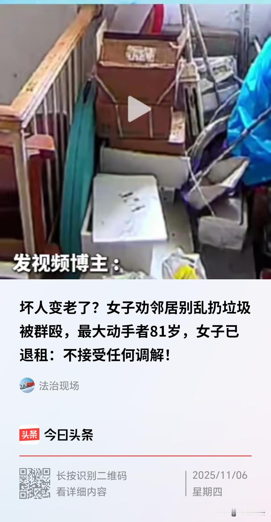 上海,一女子探望表妹时,因难以忍受邻居门前长期堆积、污水横流的厨余垃圾,进行了礼貌提醒。不料,81岁的邻居率先冲出发难,对女子进行推搡,并高喊“你别推我”制造假象。紧接着,一65岁的老人加入,一边拉扯一边训斥“你还敢打老人”。更可恶的,一44岁男子也冲了出来,将女子强行推至监控死角,死死掐住其脖子并按倒在地。随后,三人对女子进行了长达几分钟的拳打脚踢甚至棍 棒相加,期间女子拼命呼救。更令人震惊的是,警察到场后,对方仍公然挥拳挑衅。此事导致女子身心受创,其表妹也因恐惧连夜退租。 在某小区,一套普通出租房里住着一位年轻姑娘,她的表姐詹某时常前来探望,两人相互照应。 从十月底开始,每当詹某来到表妹所住的楼层,总能闻到一股腐臭,源头是对门邻居堆在门口的厨余垃圾,不仅散发着酸 臭,地板上还淌着浑浊的液体。 表妹曾无奈地告诉詹某,这户邻居长期如此,物业和其他居民投诉多次,但问题始终未解。物业的回应永远是“我们会劝”,却从未有过实质行动。 垃圾越堆越高,怨气也在无声中累积。 11月1日傍晚六点多,詹某再次来到表妹家。门前的垃圾依然刺眼,异味弥漫整条走廊。她忍无可忍,敲响了邻居的门。 开门的是一位老人,詹某用平常的语气说:“垃圾别再堆门口了。” 然而,这句话像一颗火星,瞬间点燃了炸药桶。 81岁的刘某第一个冲出来,对着詹某猛地推搡,口中却喊着:“你别推我!” 詹某尚未反应过来,65岁的张某也加入战局,一边用力拉扯她,一边高声指责:“你还敢打老人!” 詹某慌忙解释:“监控都拍着了,我根本没动手!”但无人理会。紧接着,44岁的朱某从屋内冲出,他正值壮年,一把将詹某推至监控拍不到的角落,死死掐住她的脖子,将她按倒在地。 接下来的几分钟,三人朝着詹某拳脚相加,甚至抄起棍子殴打。 詹某拼命呼救,表妹闻声冲出门试图拉架,但两个女子无法抗衡三个男人的暴力。 最终,詹某和表妹挣脱逃回屋内,颤抖着报警、叫救护车。 警察在18时47分赶到,但暴力并未终止。一名施暴者竟当着警察的面再次挥拳,将詹某推倒在地。 救护车到来时,詹某全身发抖、手脚冰凉,她对医生说:“我以为我要死了。” 事后,詹某夜里常做噩梦,见人靠近便下意识退缩,她的表妹更是连夜退租,连押金都不敢要。 詹某向警方明确表态:“不接受任何调解,要求立案。” 有小区居民透露,这户人家是出了名的“强势”,长期堆放杂物、乱扔垃圾,物业始终以“只能劝不能罚”敷衍。 那么,从法律角度,这件事如何评价呢? 1、三名行为人的殴打行为应如何定性?是治安违法行为还是已构成刑事犯罪?该如何处罚? 《治安管理处罚法》第四十三条规定:殴打他人的,……有下列情形之一的,处十日以上十五日以下拘留,并处五百元以上一千元以下罚款:(一)结伙殴打、伤害他人的;…… 本案中,朱某、张某、刘某三人对詹某实施了推搡、掐脖、按倒在地、拳打脚踢、使用棍子等行为,持续时间长达多分钟,并造成了詹某需送医就医的后果,这已明显超出了轻微推搡的范畴,完全符合结伙殴打他人的治安违法行为。 这意味着,朱某、张某、刘某伤人行为属于加重情节,最高可以处15日拘留及最高1000元罚款。 不过,《治安管理处罚法》第二十一条规定,对年满70周岁以上的违反治安管理行为人,依照本法应当给予行政拘留处罚的,不执行行政拘留处罚。 对于81岁的刘某,因年龄超出70周岁,依法将免予行政拘留处罚,但仍然可以采取罚款等处罚,且违法记录依然会存在。 如詹某身体损伤经鉴定达到轻伤以上级别,则朱某、张某、刘某三人涉嫌故意伤害罪。 《刑法》第二百三十四条规定,故意伤害罪有故意伤害他人身体的,处三年以下有期徒刑、拘役或者管制。犯前款罪,致人重伤的,处三年以上十年以下有期徒刑。 朱某、张某、刘某三人在法律上构成共同犯罪,应根据作用大小区分主次责任,朱某责任最重,张某、刘某次之。 2、物业公司是否有管理失职责任? 《民法典》第九百四十二条规定,物业服务人应当……妥善维修、养护、清洁、绿化和经营管理物业服务区域内的业主共有部分,维护物业服务区域内的基本秩序,采取合理措施保护业主的人身、财产安全。…… 本案中,有业主指控,涉事业户长期乱扔垃圾,不止一次被投诉,而物业仅以只能劝,不能罚为由敷衍了事,未采取任何有效的制止措施或向城管等部门报告,其不作为客观上纵容了该户人家的蛮 横行为。 一旦查证属实,则物业公司未能履行维护小区基本环境卫生和秩序的义务,存在明显的管理过错。 詹某及其表妹可以依据物业服务合同,追究物业公司的违约责任,或就其不作为导致居住环境恶化、安全感受到威胁主张相应的责任。 对此,您怎么看?