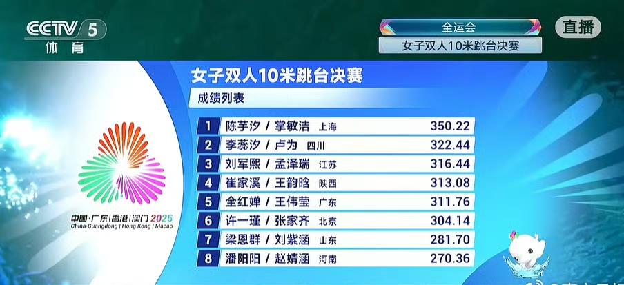 全红婵拿第五,我却想给她鼓掌! 今天全运会跳水决赛,全红婵和王伟莹得了第五。分数不高,311.76,冠军被上海队的陈芋汐/掌敏洁稳稳摘走。 但奇怪的是,热搜上挂着的不是金牌得主,而是全红婵平安完赛就是胜利。 其实看细节就懂了。全红婵脚踝旧伤没好,腰也贴着肌贴,赛前训练都得靠AI辅助调整动作。搭档才一个月,同步性难免出问题,第四跳明显没合上拍。 但你看第五跳失误后,全红婵立马搂住自责的王伟莹说“没关系”,这姑娘,强是真强,暖也是真暖。 要知道她这半年挺难:身高窜了15公分,体重涨了7公斤,为控体重晚餐只能啃水煮鸡胸。发育关叠加伤病,能站上跳板已经是在闯关。 这次虽然没站上领奖台,但她月初刚帮广东队卫冕了团体金牌,复出首秀就炸场。 所以第五名怎么了?体育精神又不是只有金牌才算数。带着一身绷带拼完全程,赛后先安慰队友,这种故事比分数好看多了。 等着吧,等她们磨合好了,伤养利索了,“水花消失术”迟早要杀回来。