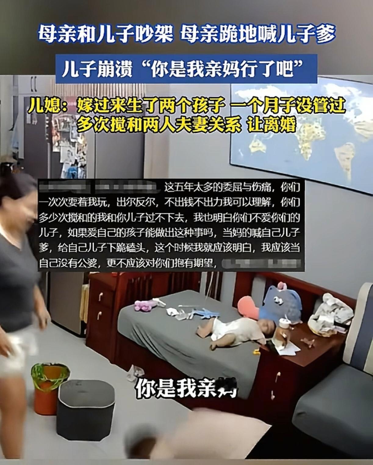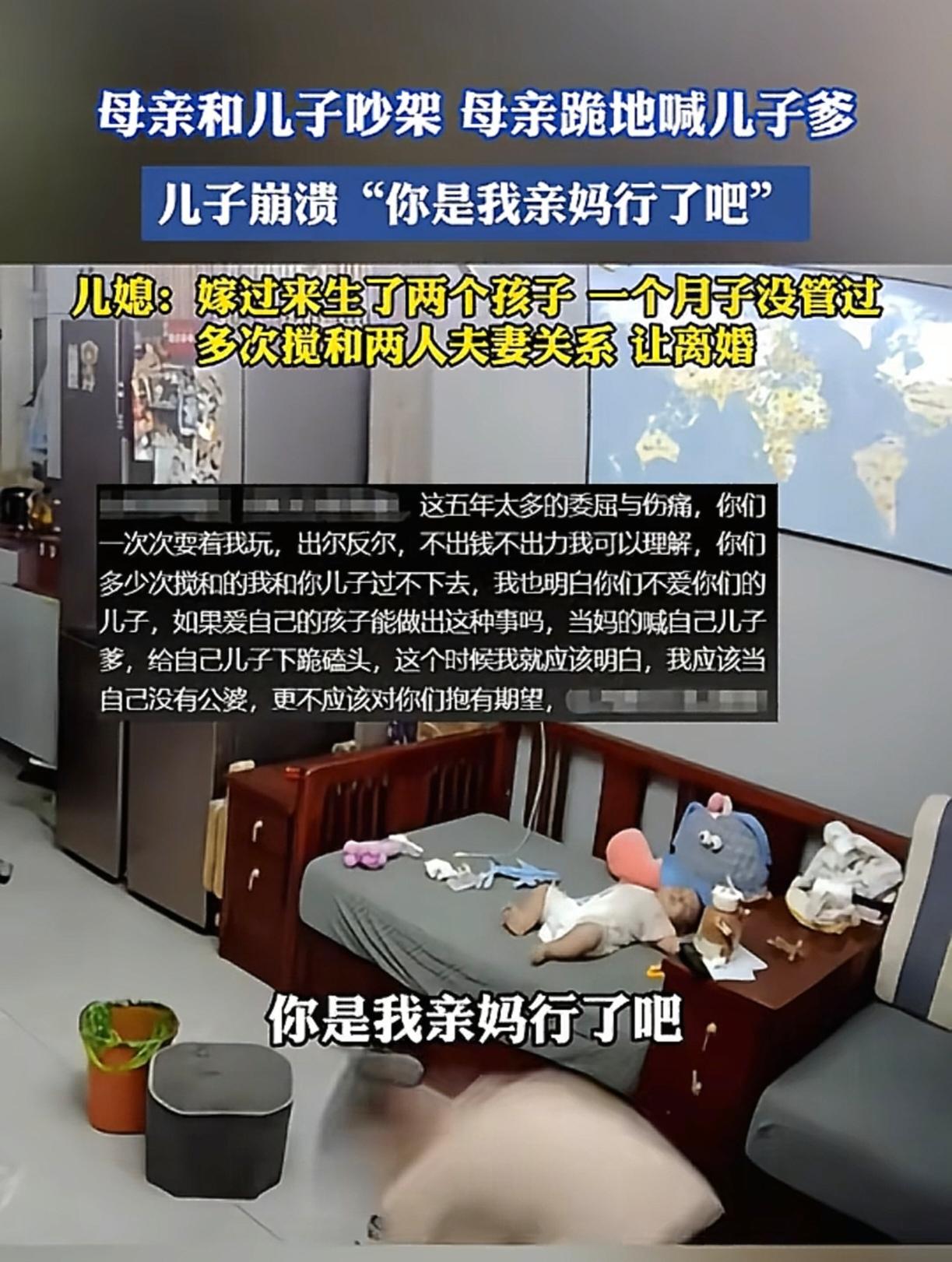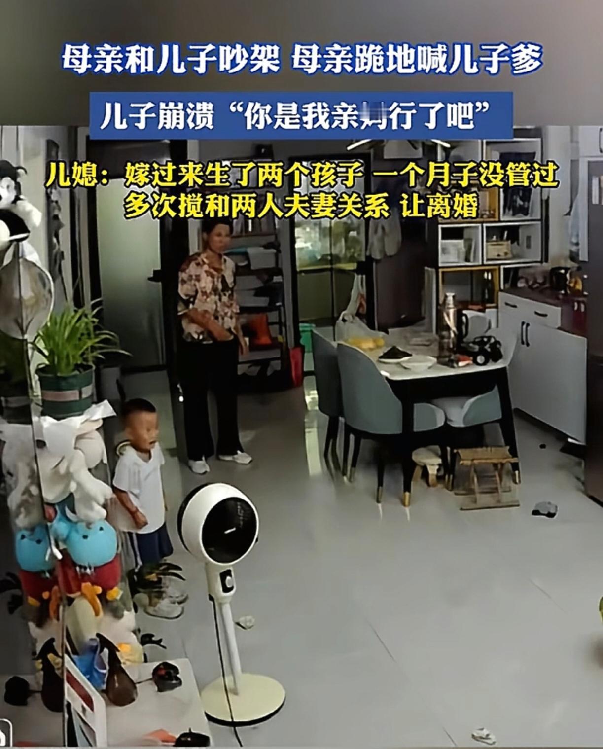 家家有本难念的经。刷到一视频,一个人高马大的山东小伙子硬是被母亲逼到磕头求饶。据说,小伙刚出了车祸,然后当天母亲想要回老家,没回成,就和小伙子吵了起来。最后母亲情绪激动,做了一件让人错愕的事情,她反复的叫儿子爹,指责儿子的不孝,直接给男子逼崩溃了,跪地大喊“你为什么叫我爹,你是我亲妈啊”。 更让人无力的是,看到男子情绪激动之后,母亲转而朝向男子跪地磕头,哭诉男子不孝。男子被逼的实在没办法,求着让母亲搬出去住,母亲不乐意了立刻站起来说,要搬也是你们搬出去。 心里真是五味杂陈,真是慢慢的把你逼疯,然后静静的看着你,最后再说你不孝顺。家庭 情感 原生家庭