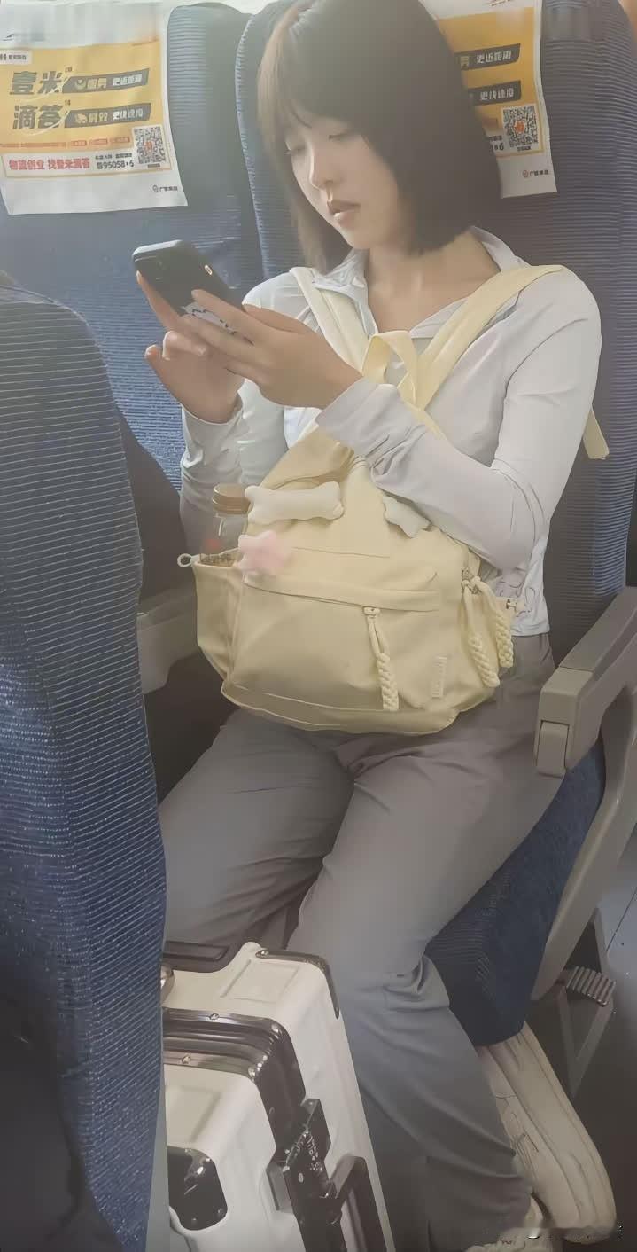 火车上看到一位身材气质都非常好的美女。 像这样的美女应该是有很多人追吧!高铁遇美女