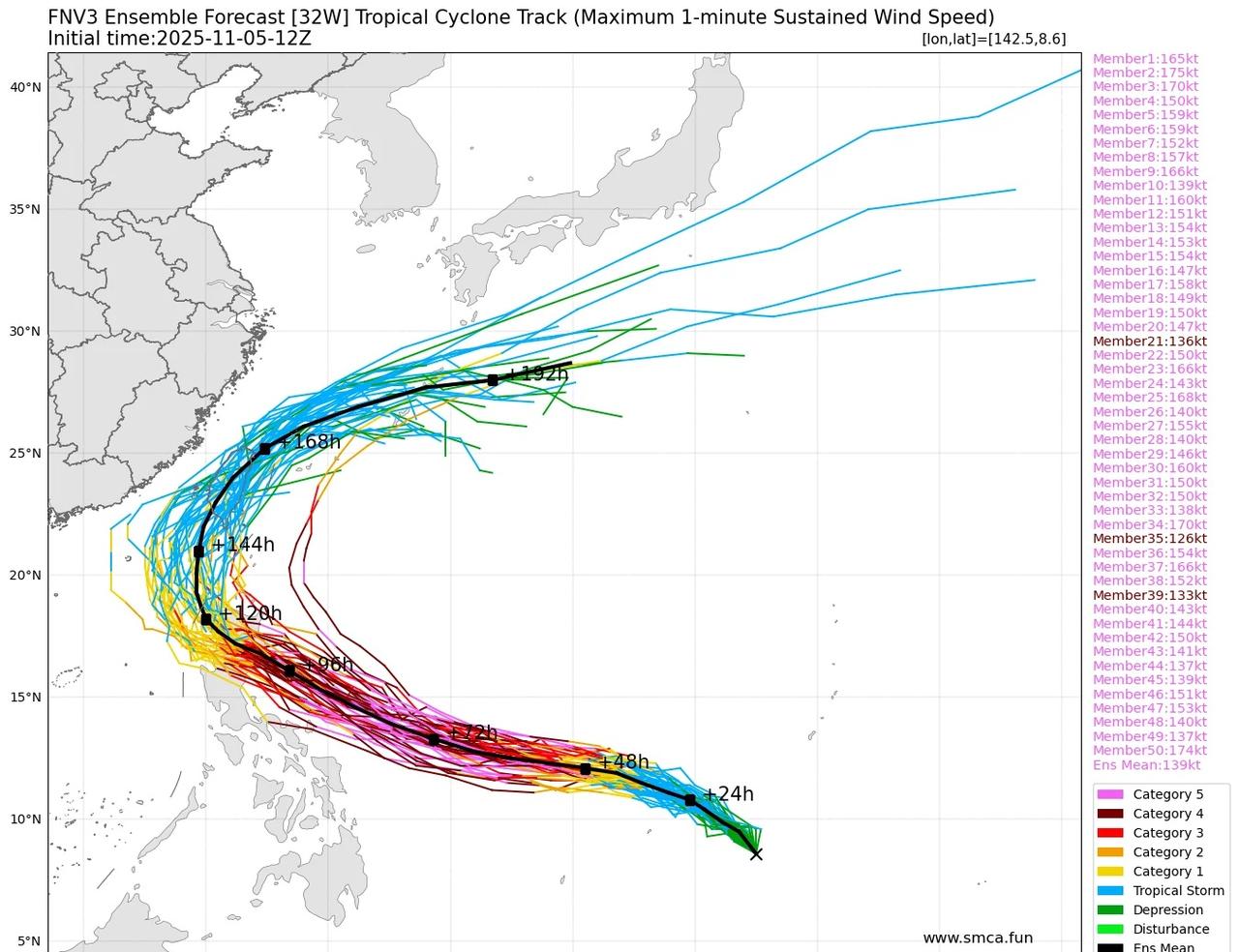 台风凤凰生成,下周登陆影响广东福建台湾等 台风凤凰今天凌晨在美国关岛附近洋面生成,,未来稳定朝西北方向移动,强度逐渐增强,最强可达超强台风级。从云图来看台风凤凰结构还是比较散,主要是环流大。路径方面根据AI歌谷模型fnv3,来看分歧很小,趋向基本确定。预计未来稳定朝西北方向移动10~11日先登陆穿过菲律宾吕宋岛,并入海南东北部海面,转向西北偏北,向广东东部,福建南部近海靠近,12日转向东北偏北方向移动,登陆我国台湾。12~13日我国广东东部,福建,浙江,上海等有明显风雨天气,台湾有较强降雨,有暴雨到大暴雨,局部特大暴雨。 天气 台风