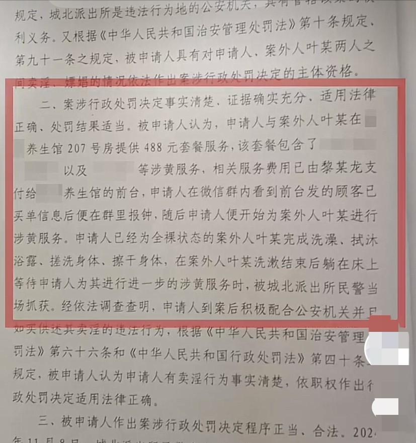 唐女士因涉嫌提供色情服务被行政拘留一天,如果把视角拉开,这件事的核心,是一份围绕她亲笔签署的询问笔录开始的,但在唐女士的叙述中,却呈现出完全不同的景象。 她是一位哺乳期母亲,为了家庭生计投身工作,本希望通过合法经营维持生活,却被卷入行政处罚。 在警方和一审法院的逻辑里,这份笔录是案件的“真相”,笔录详细记录了唐女士承认与顾客叶某商议提供488元的“泡浴”服务,并提到顾客已经脱衣入浴。 根据公安部关于卖淫嫖娼行为认定的规定,只要“着手实施”,就构成违法行为。 除此之外,警方还调取了顾客叶某以及唐女士同事的陈述,三方证据相互印证,使得官方认定案件“事实清楚,证据确凿”。 在这个证据链下,行政拘留一日的处罚,在司法系统看来,是完全合法且合理的决定。 但是唐女士讲的版本,与官方认定完全不同,她强调,这份笔录是在极度恐惧和心理压力下签下的。 事情的开端是几名便衣民警突然闯入店内,将顾客戴上手铐,她看到这一幕时完全慌了。 随后在询问过程中,她因不懂法律、情绪紧张而一直哭泣,她说,民警在旁边反复施压,“不配合就拘你一个”“签个字明天就可以走”。 这些话让她根本没有时间消化笔录内容,只能在未看清文件的情况下签字,以求尽快脱身。 唐女士坚持自己实际提供的仅是198元的普通泡浴服务,当时她只是帮浴缸放水,并没有涉及笔录中记载的488元色情内容。 她反复强调,笔录中所谓的高价服务,根本没有发生,这与警方的书面记录完全不一致。 而执法记录仪的录像,因“内存问题卡顿”丢失,警方为此出具了书面说明,一审法院采信了这一解释,认为“合理”。 在没有影像资料支撑的情况下,法院只能依赖书面笔录,而唐女士口头说明自己受到胁迫的证词,由于缺乏物证支持,法律效力自然薄弱,她作为成年人签了字就要承担后果。 最终,唐女士败诉,这一结果在法律上有其依据,但案件引发的讨论远未结束。