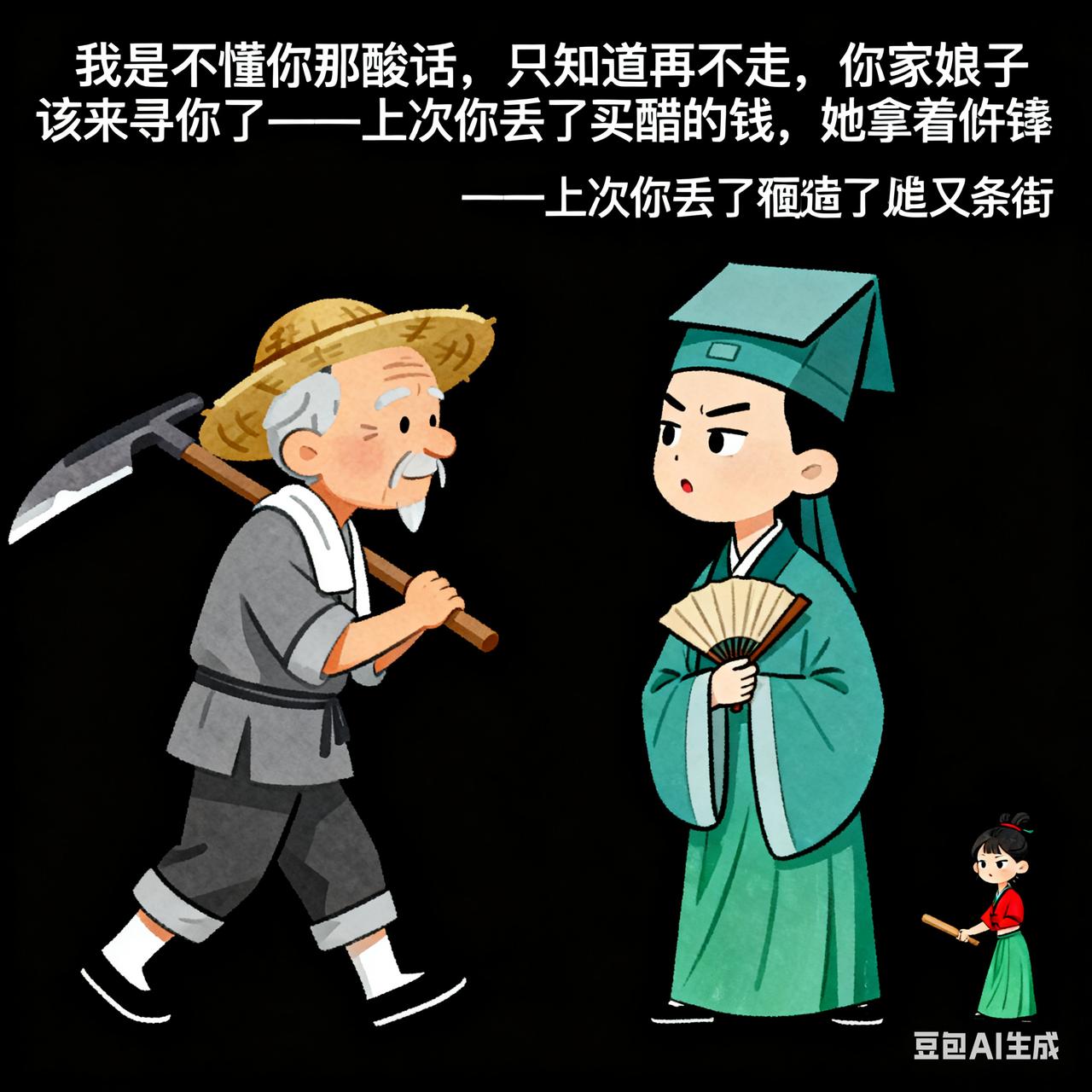 古代笑话 书生去买豆腐,拱手道:“君子之交淡如水,此豆腐乃民生之本,敢问作价几何?” 摊主懵了:“啥淡如水?一文钱两块,要就掏钱,别拽文!” 书生红了脸,付了钱拎着豆腐往家走,路上被石头绊了一跤,豆腐摔成了泥。他蹲在地上叹气:“呜呼!吾之豆腐,竟遭此横祸,可谓‘出师未捷身先死’矣!” 路过的老农听了,拿起锄头给他扒拉了两下:“啥捷不捷的?摔了就捡起来呗,拌点咸菜还能吃,磨叽啥!” 书生梗着脖子:“汝不懂,此乃……”话没说完,老农扛起锄头就走:“我是不懂你那酸话,只知道再不走,你家娘子该来寻你了——上次你丢了买醋的钱,她拿着擀面杖追了你半条街!” 书生一听,也顾不上掉书袋了,拍拍屁股就往家跑,边跑边嘟囔:“娘子莫恼,吾这就归矣……”