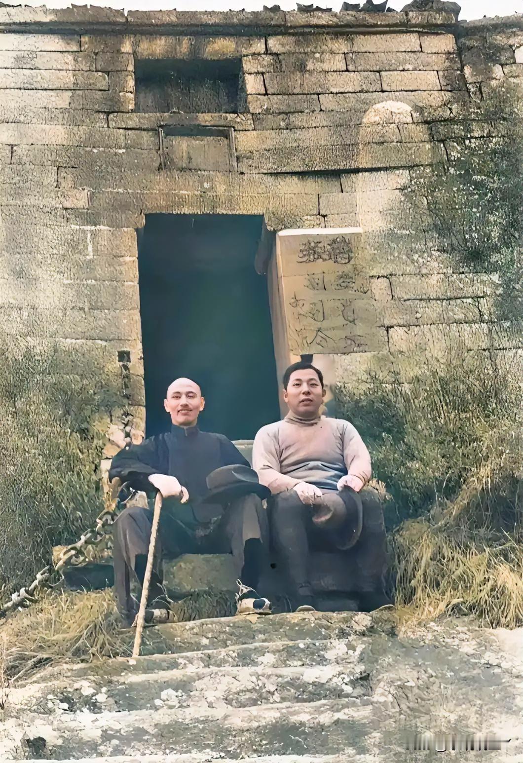 这是张学良和蒋中正一起爬山的一张合影老照片,拍摄于西安事变前夕。这绝非演员扮演的,而是货真价实的真品,两人面貌呈现的十分清晰,一看便知。