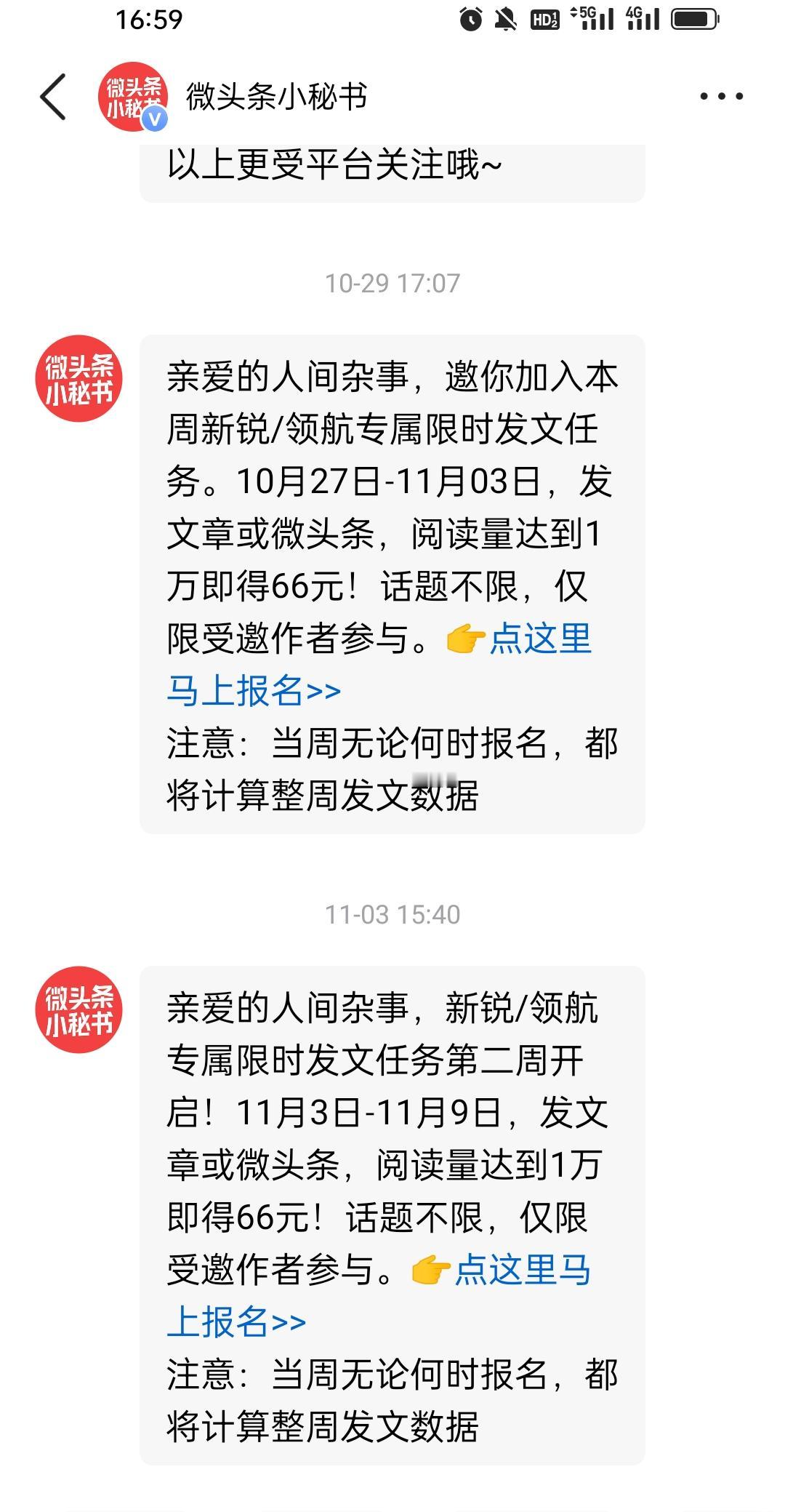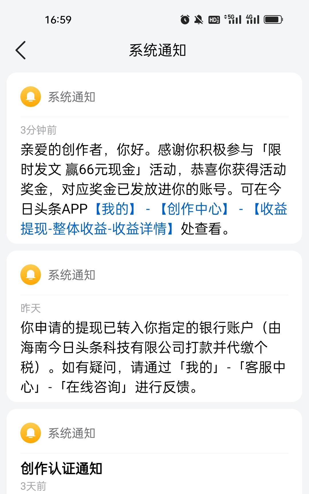 66块钱到账了,这么大的一笔钱,头条说送就送,牛! 第一期限时发文邀请,有个微头条爆了20000多的阅读,一下子就达标了,今天奖金就到账了。 但是第二期的阅读任务还没完成,还有两天,也不知道这第二个66块钱能不能拿到。 继续加油吧。 66块钱不多,但是也不少,够两顿饭了,加个鸡腿的那种。 希望头条能多多来点这样的活动[狗头][狗头][狗头]